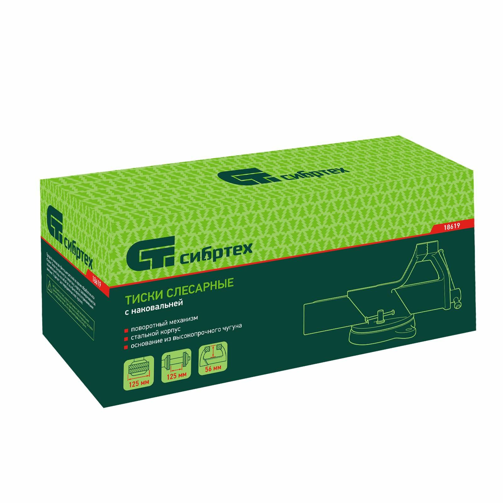 Тиски слесарные поворотные Сибртех, 125 мм ширина губок и 125 мм рабочий ход, стальной корпус и чугунное основание 18619