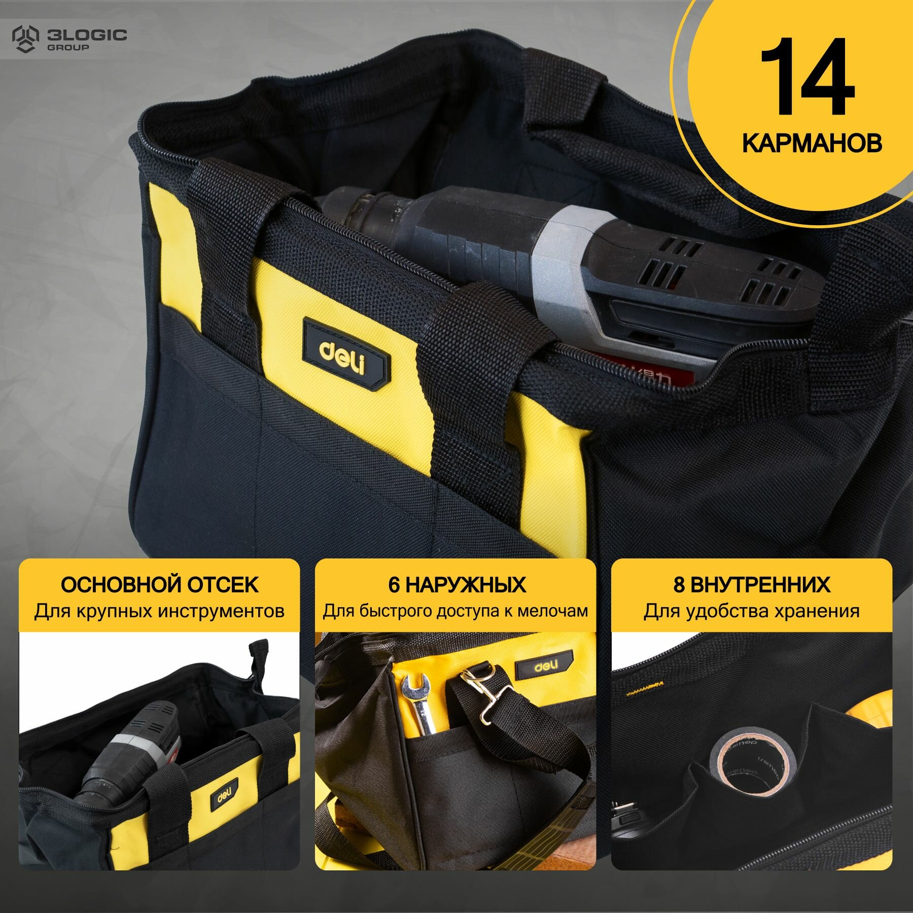DELI Сумка для инструментов DL430218 420x200x270мм (15 карманов, водоотталкивающая ткань Oxford, плечевой ремень) 130337
