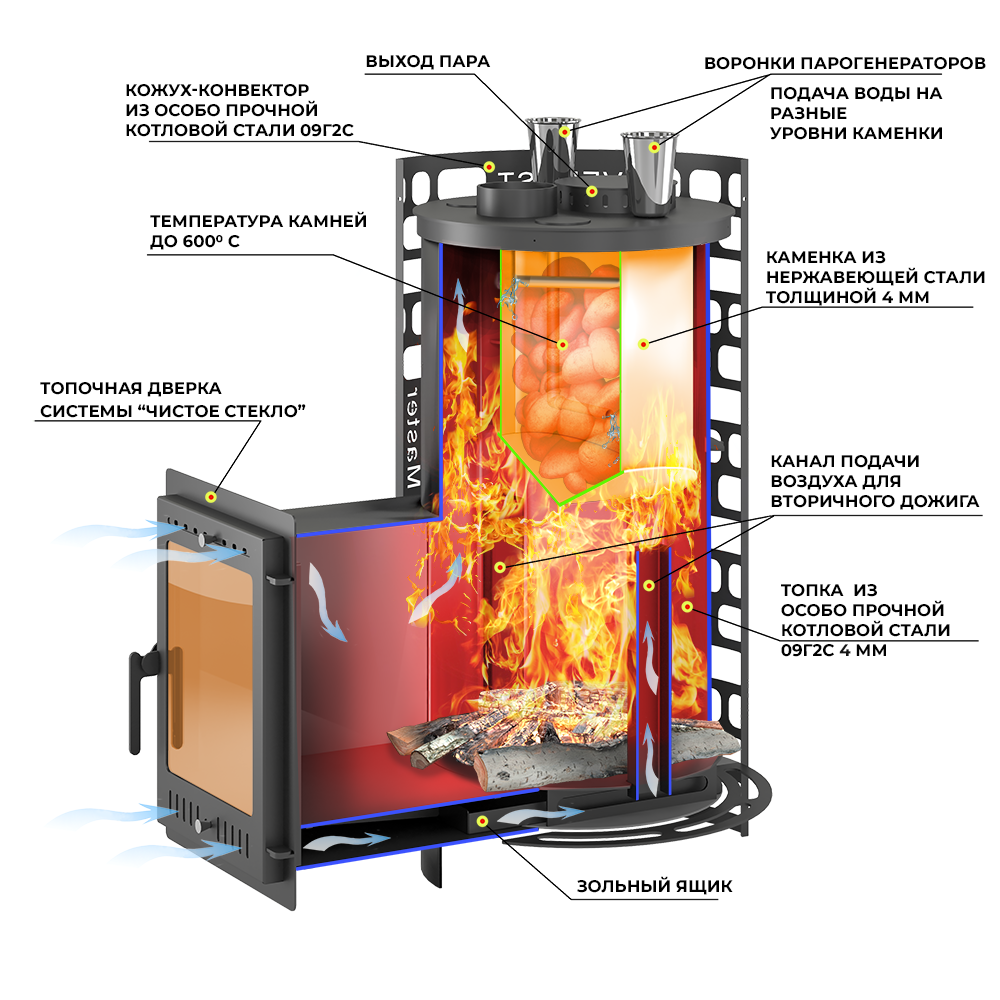 Банная печь «Варяг» Пересвет-18 с модулем закрытой каменки