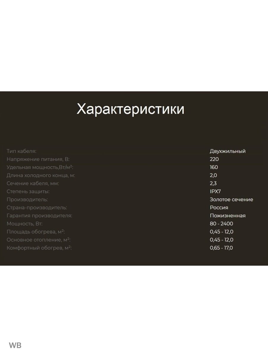 Теплый пол под плитку золотое сечение GS-2400 Вт-15.0 м.кв кабельный