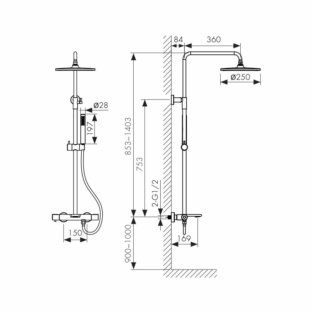 05382-9 KAISER Serio Душевая система с термостатом (стац. лейка Ø250), латунь, Black matt