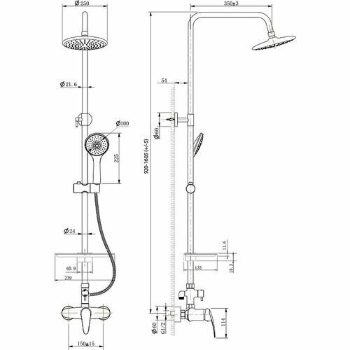 | Особенности | S-образные эксцентрики / держатель душевой лейки / Лейка / Регулировка по высоте |