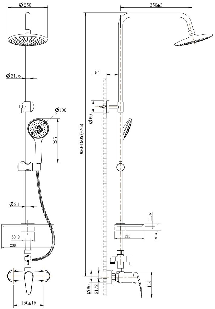 | Количество режимов верхнего душа | 1 |