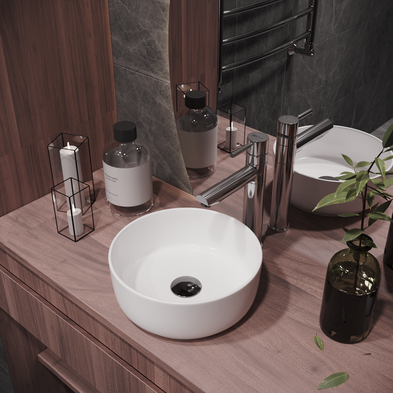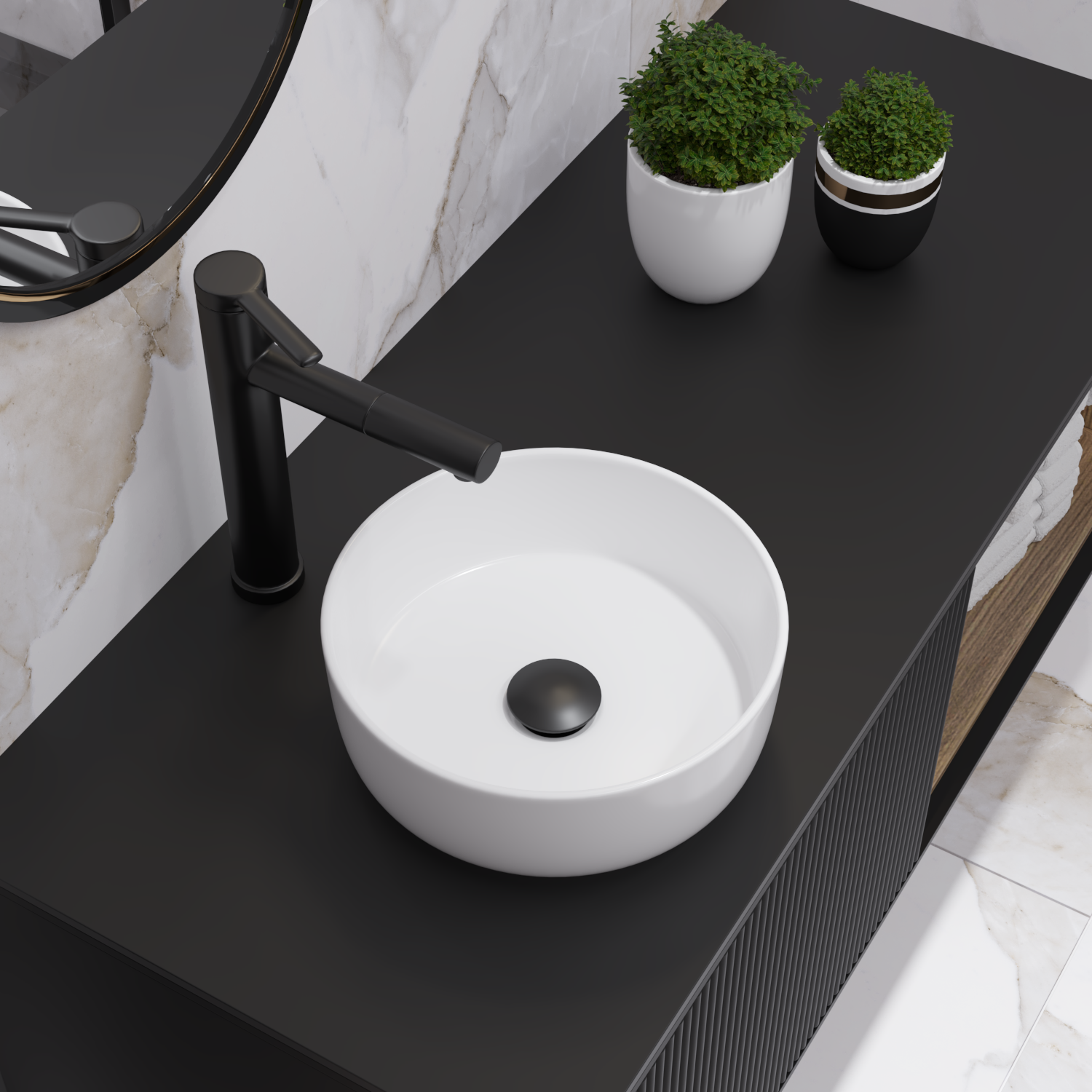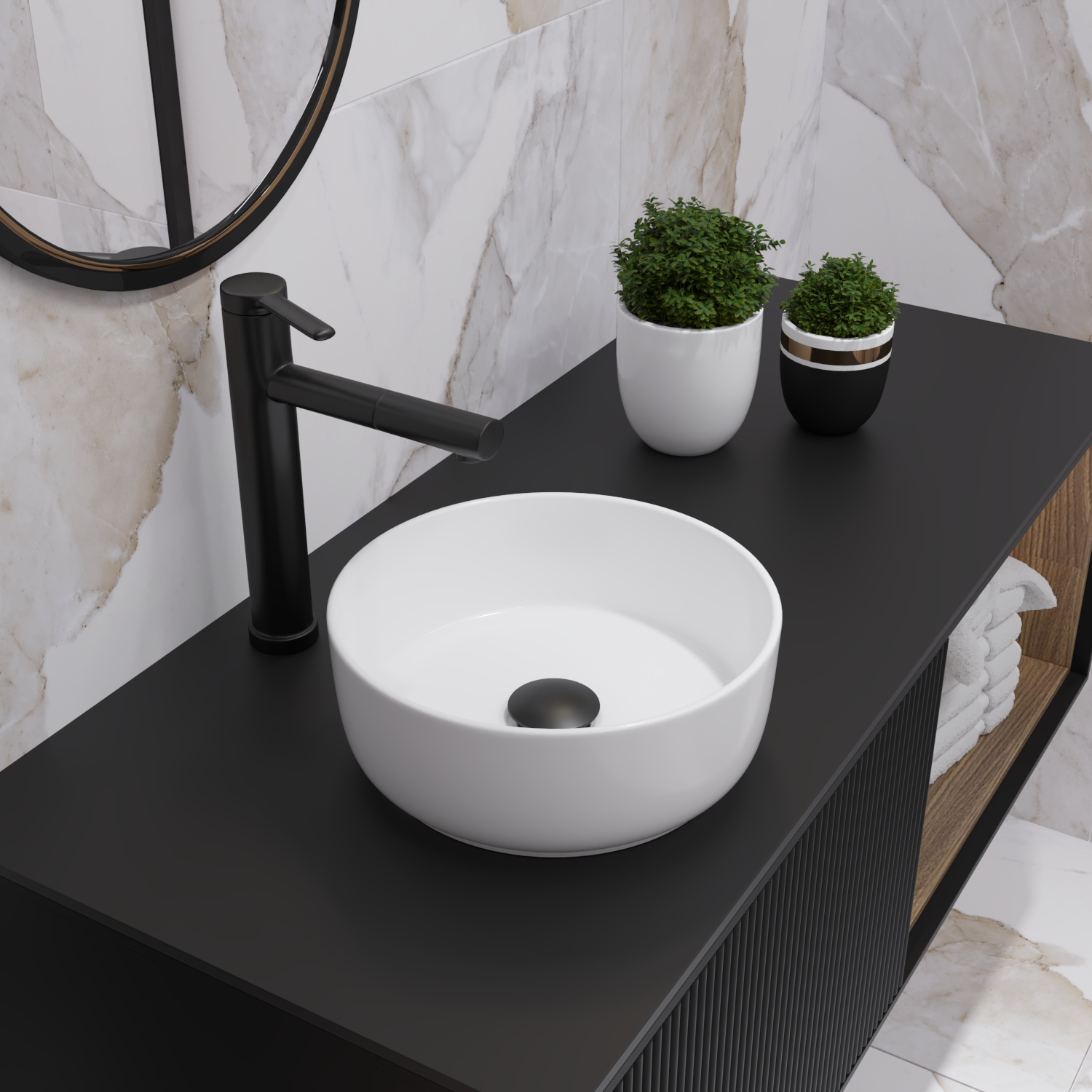 Накладная раковина в ванную Helmken 49931000 комплект 2 в 1: умывальник круглый 31 см, донный клапан click-clack в цвете черный, гарантия 25 лет