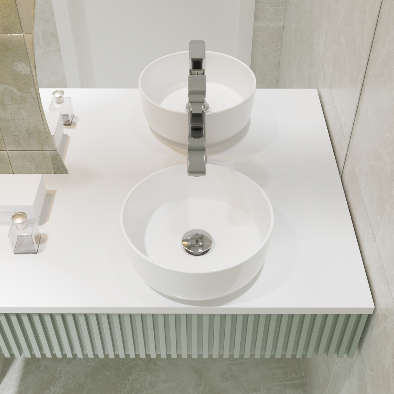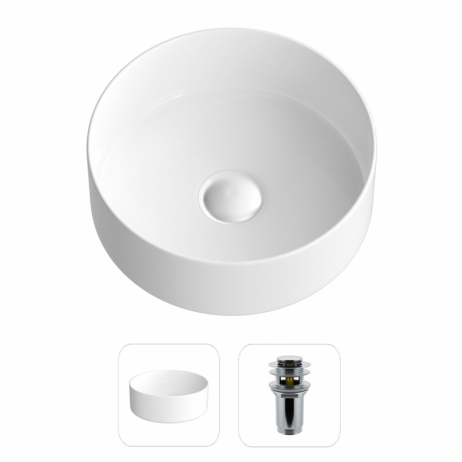 Накладная раковина в ванную Helmken 49931000 комплект 2 в 1: умывальник круглый 31 см, донный клапан click-clack в цвете белый, гарантия 25 лет