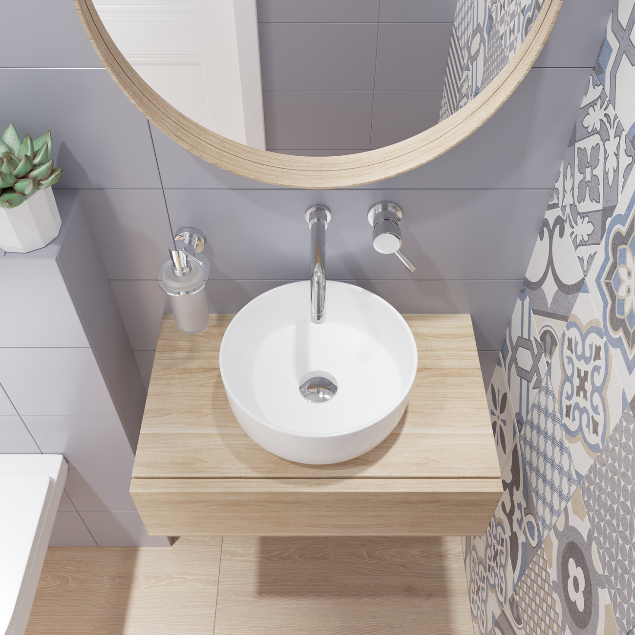 Купить Накладная раковина в ванную Helmken 49931000 комплект 2 в 1: умывальник круглый 31 см, донный клапан click-clack в цвете хром, гарантия 25 лет