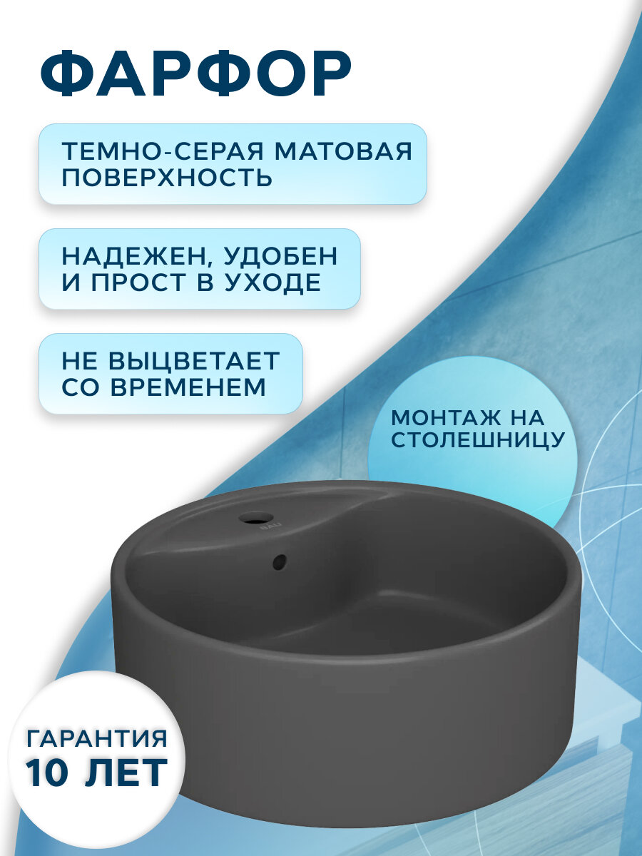 СохранитьРаковина круглая накладная BAU Element D41, с отверстием под смеситель, темно-серая матовая интересное: