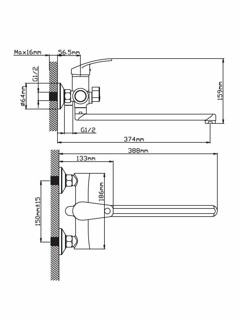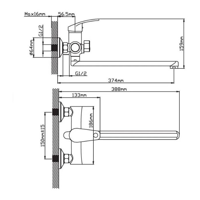 | Длина излива | 374 мм |