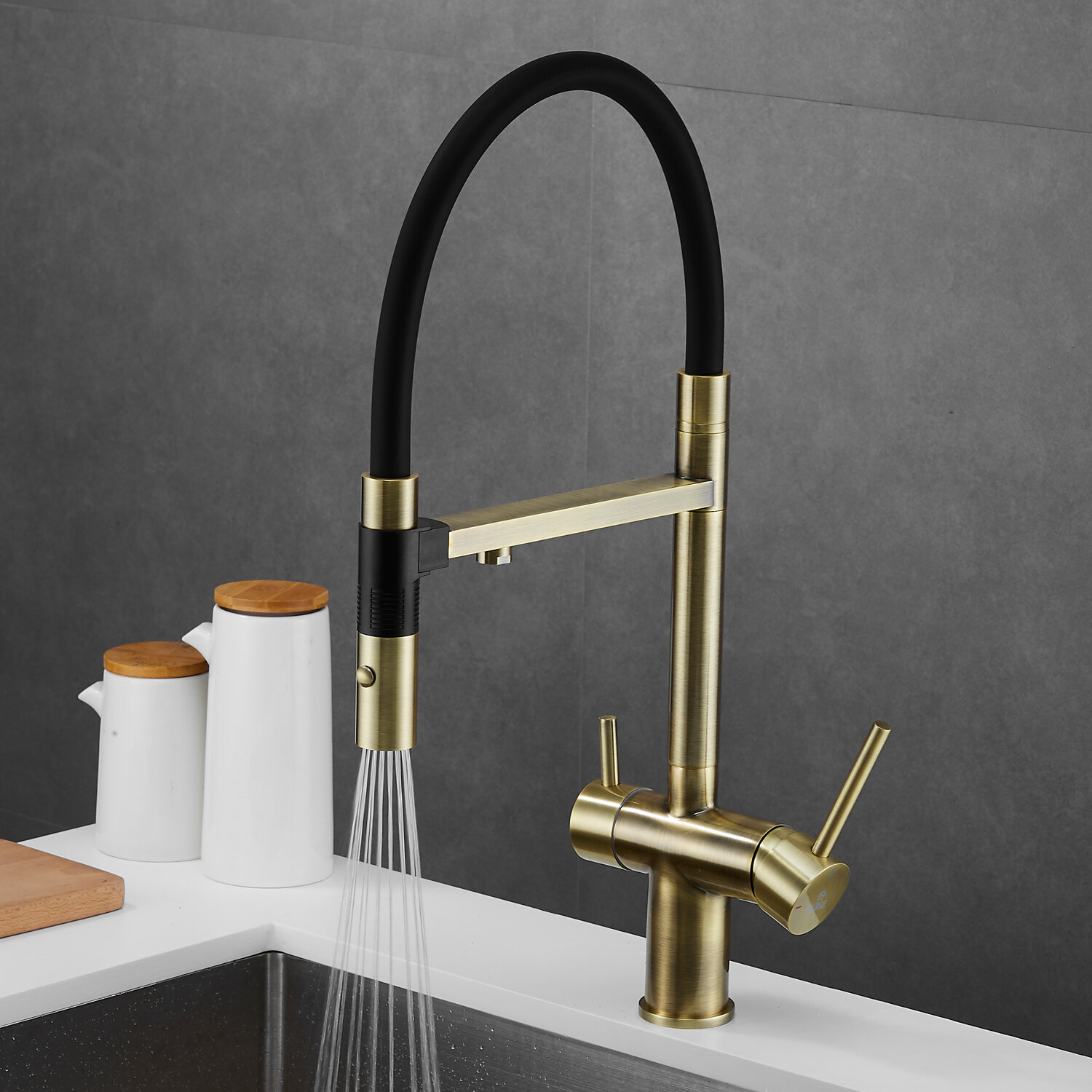 Смеситель для кухни с гибким изливом и подключением к фильтру Rose R958 Q цвет бронза