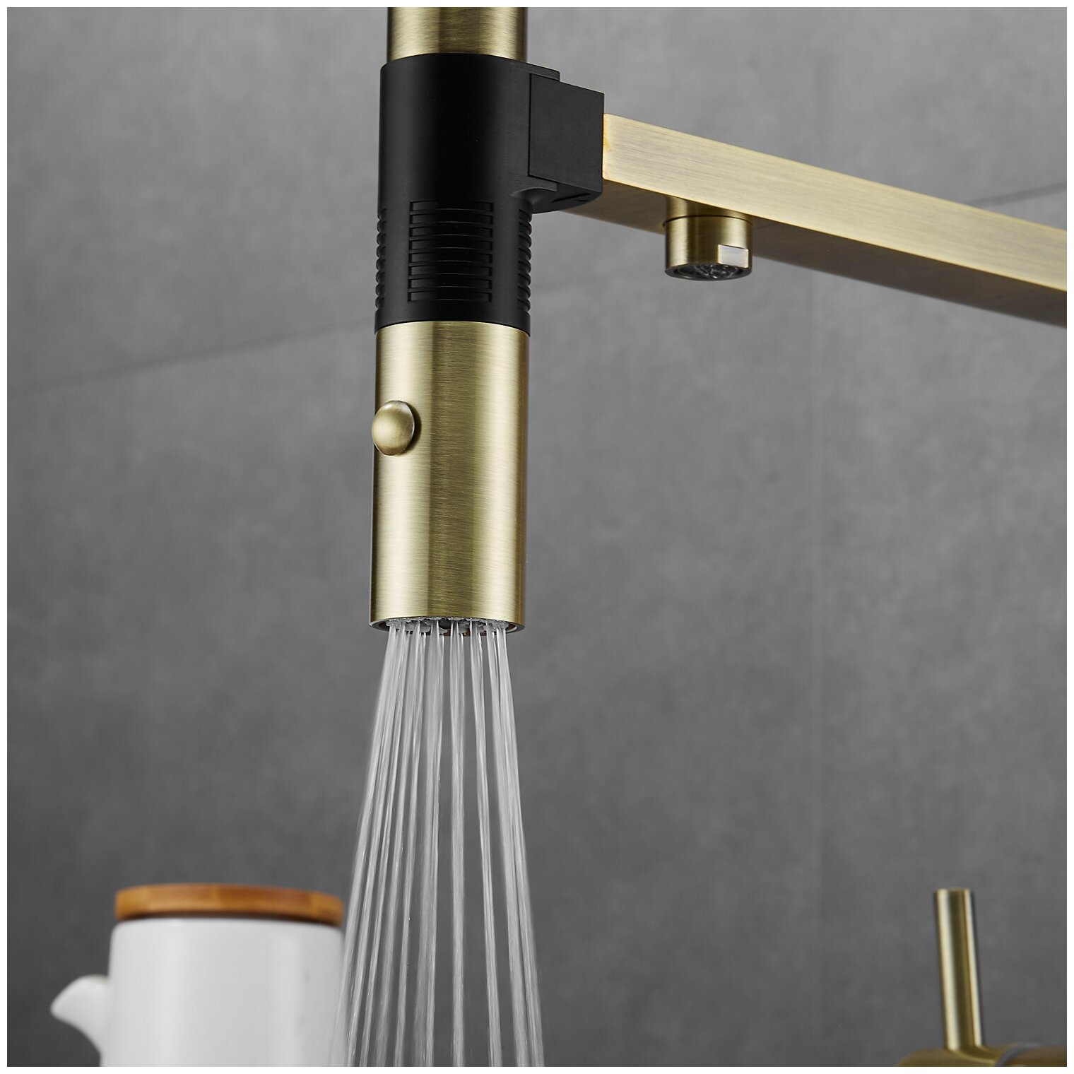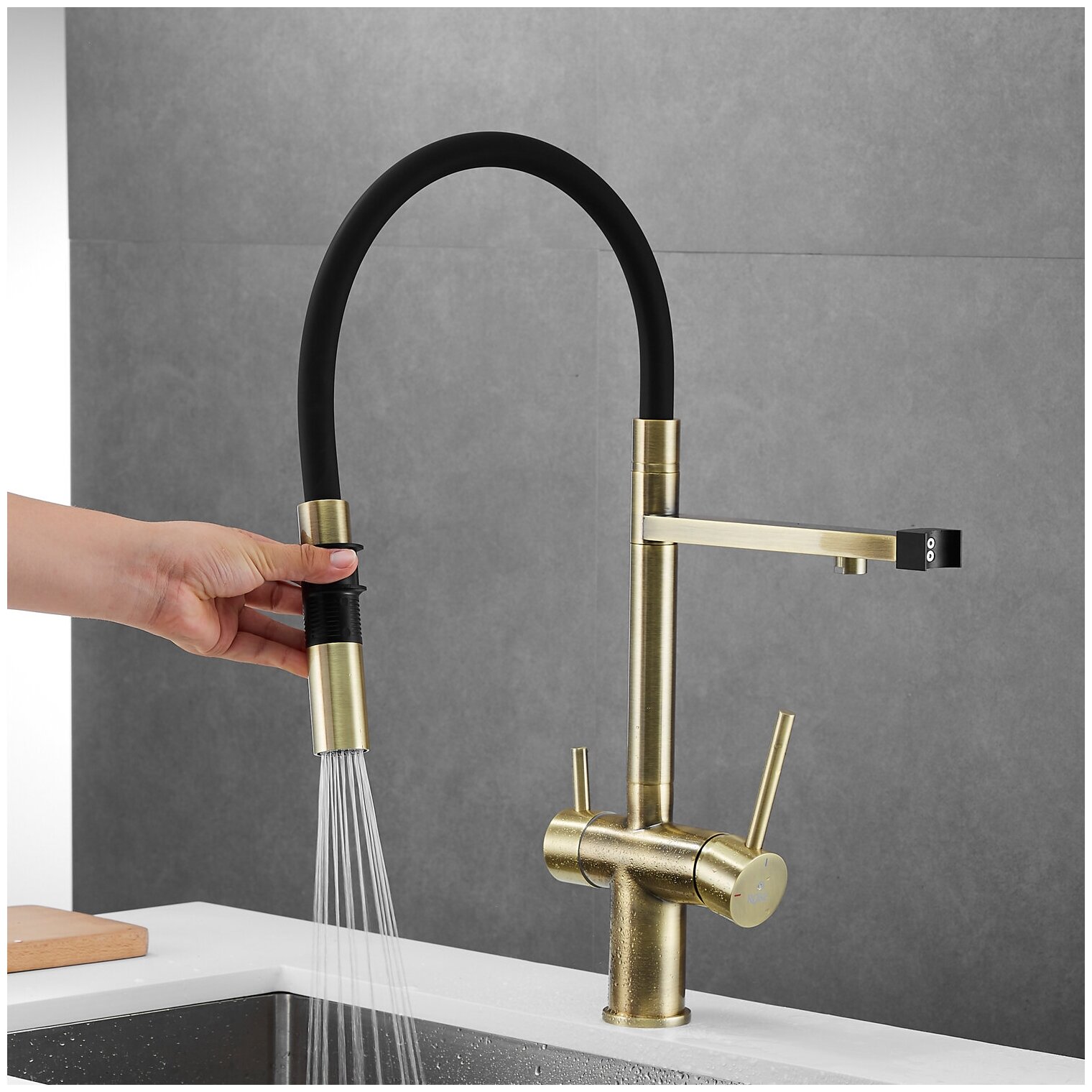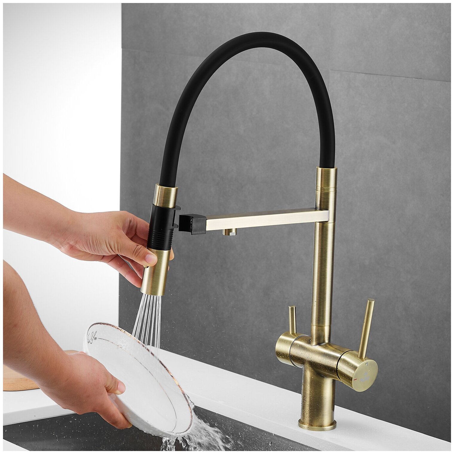 Смеситель для кухни с гибким изливом и подключением фильтра Rose R958G золотой сатин