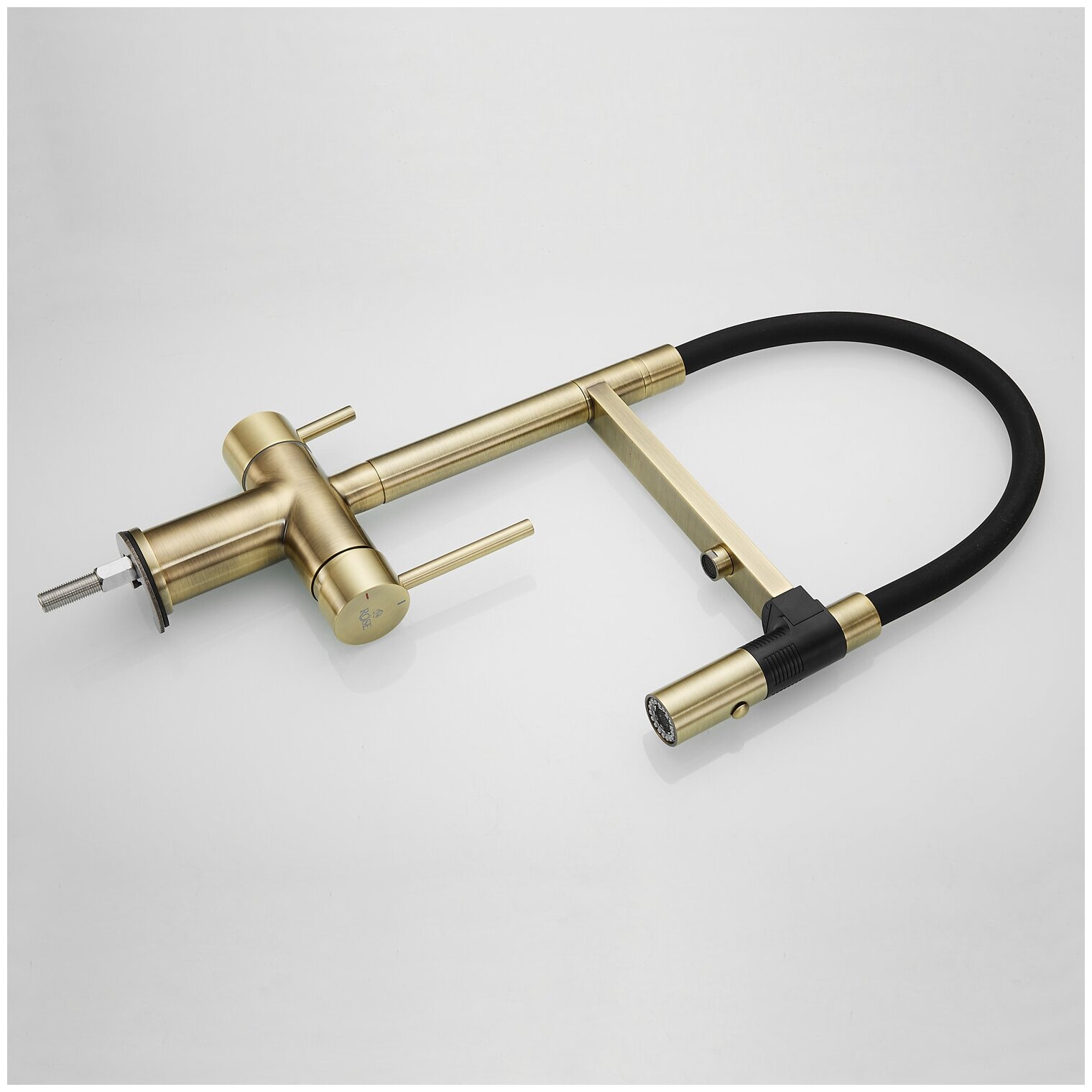 Смеситель для кухни с гибким изливом и подключением к фильтру Rose R958 E цвет золотой