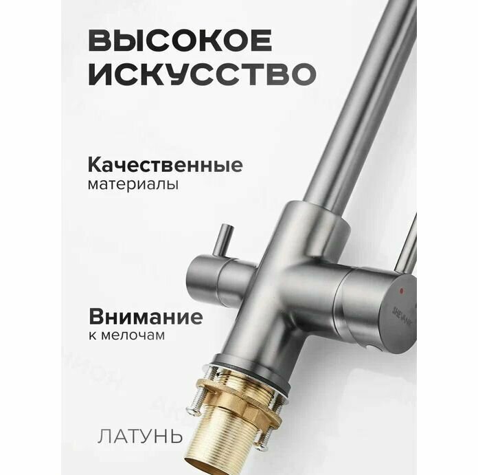 Смеситель для кухни с подключением фильтра питьевой воды Shevanik S128L, сатин