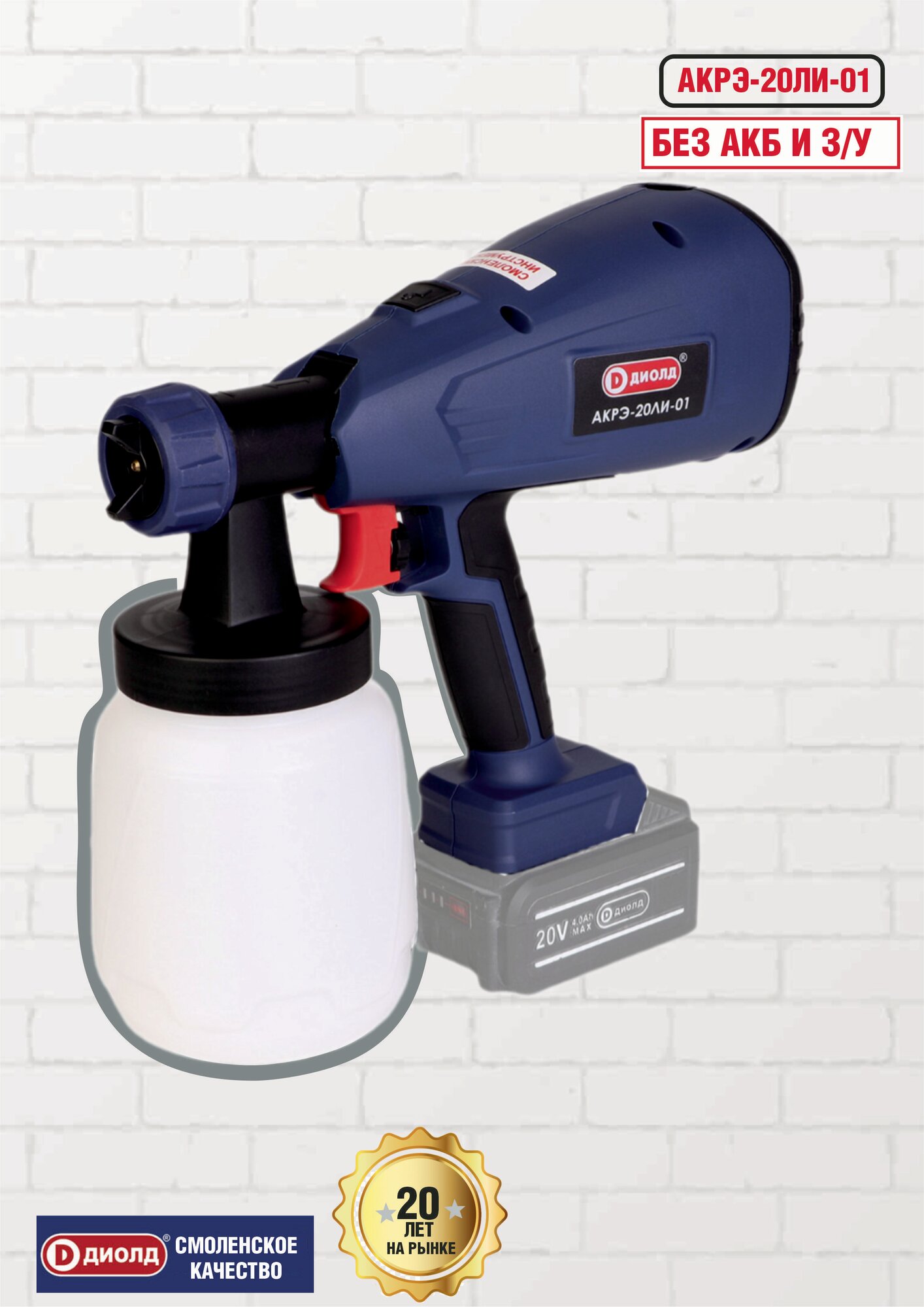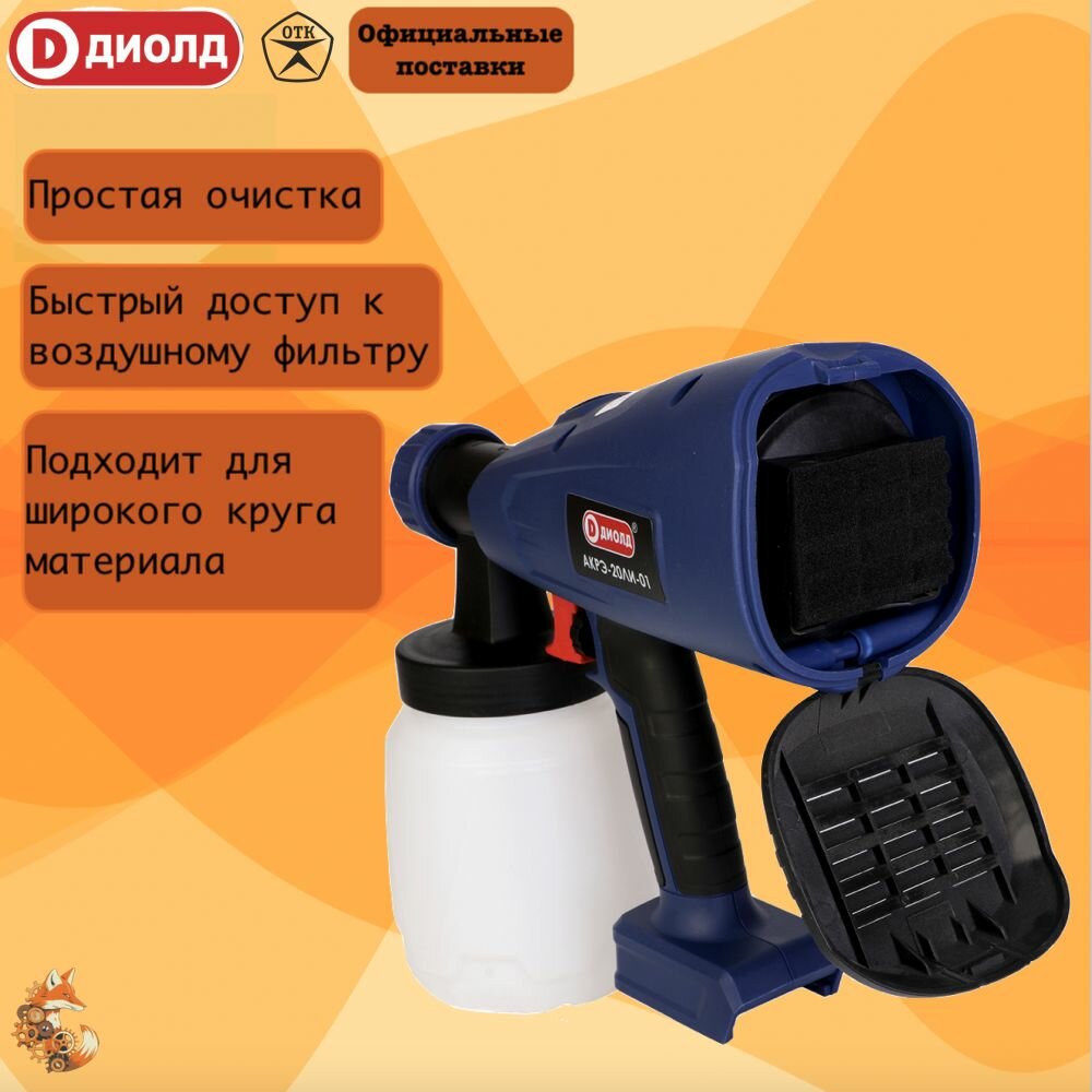 Краскораспылитель аккумуляторный АКРЭ-20ЛИ-01 Диолд /1000 мл/ 700 г/час / 100 DIN без АКБ, без ЗУ интересное: