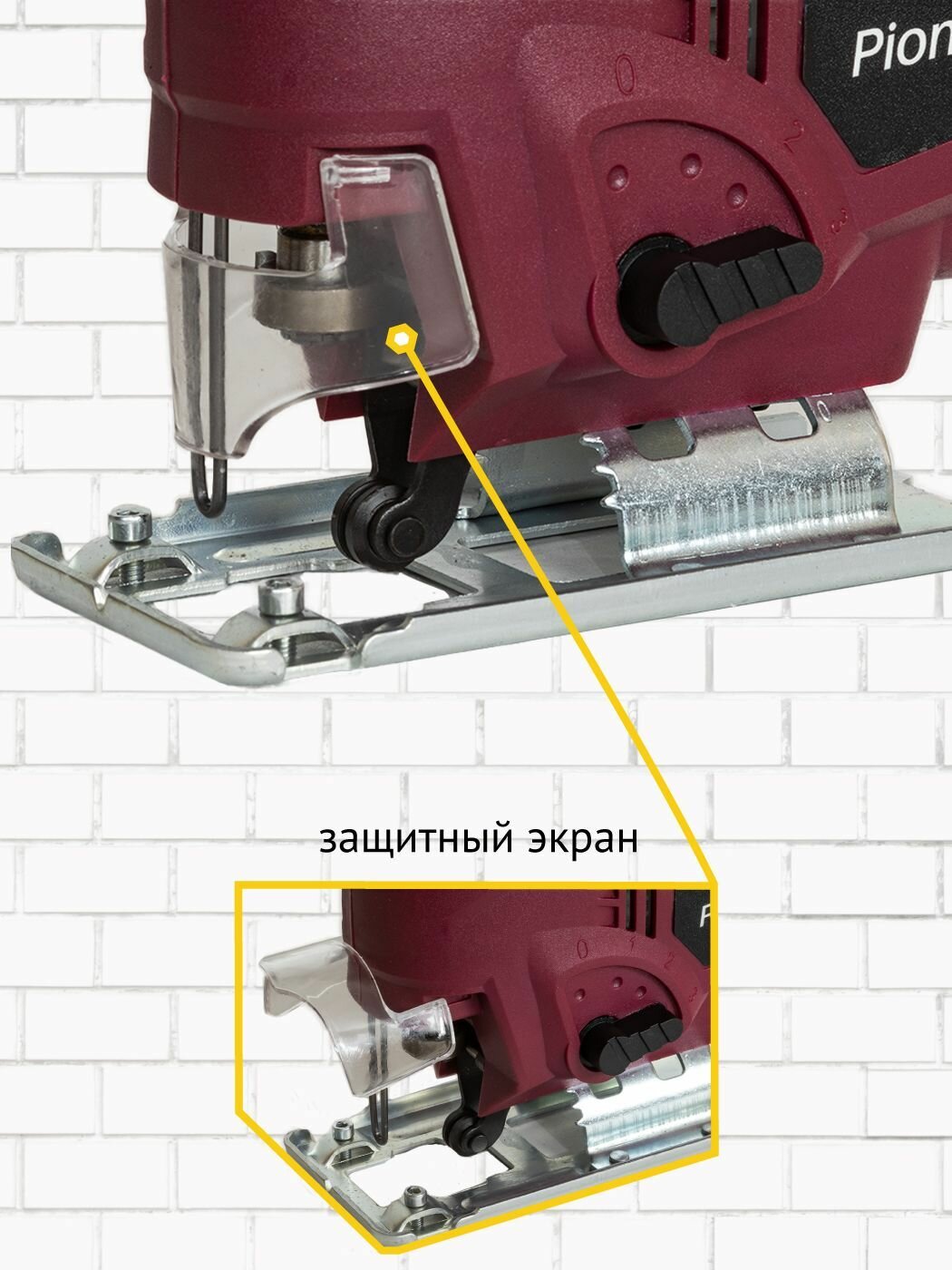 Лобзик электрический Pioneer с щеточным двигателем и защитным экраном, возможность подключения пылесоса, 4 режима, 6 скоростей, 650 Вт