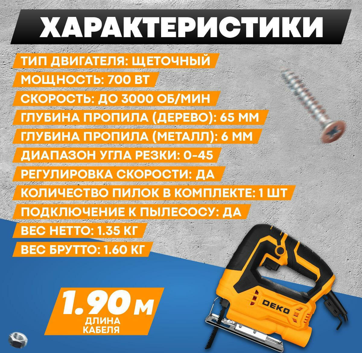 Лобзик Deko DKJS700E, 700 Вт 083-1009 интересное: