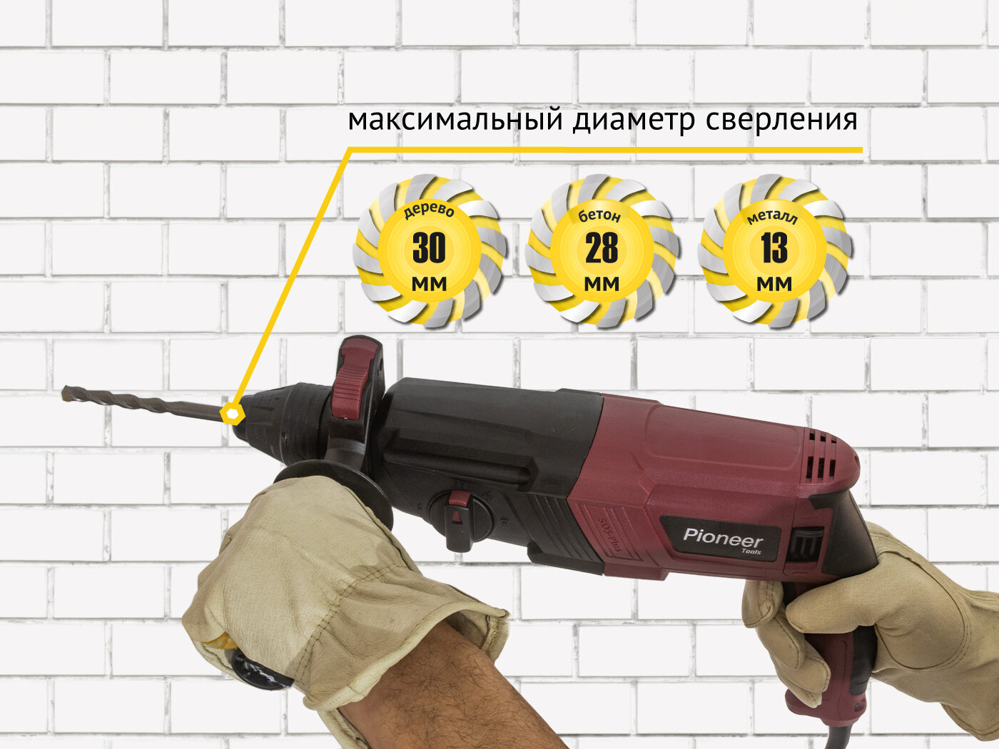 Перфоратор сетевой Pioneer RH-M900-01C, 3 режима работы + реверс, SDS Plus, 3 бура 6/8/10 мм, дополнительная рукоятка с вращением на 360 градусов, 900 Вт интересное: