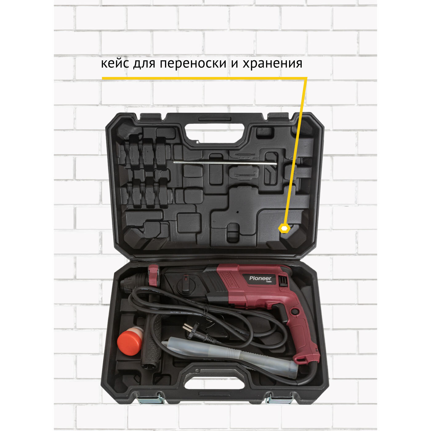 Купить Перфоратор сетевой Pioneer RH-M900-01C, 3 режима работы + реверс, SDS Plus, 3 бура 6/8/10 мм, дополнительная рукоятка с вращением на 360 градусов, 900 Вт