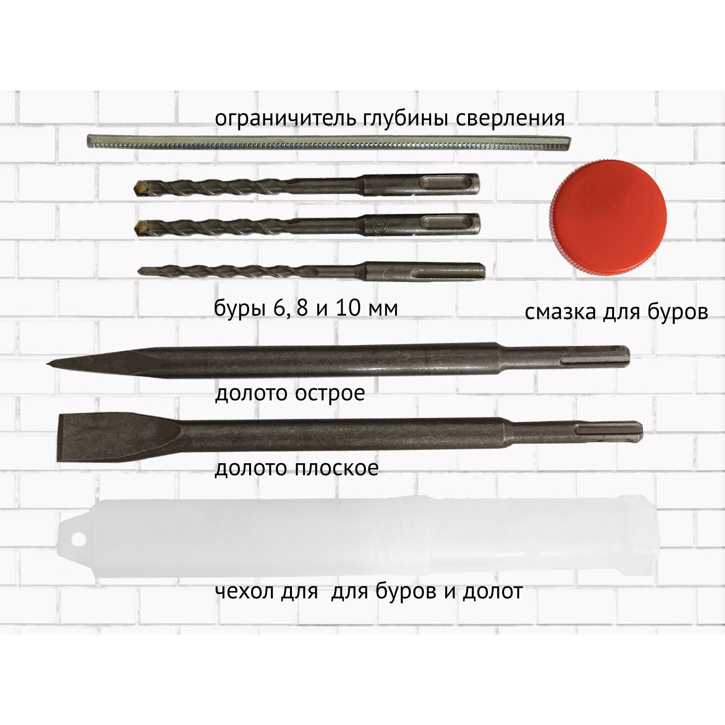| В комплекте | быстрозажимной патрон / долото / дополнительная рукоятка / ограничитель глубины сверления / быстрозажимной патрон / долото / дополнительная рукоятка / ограничитель глубины сверления |