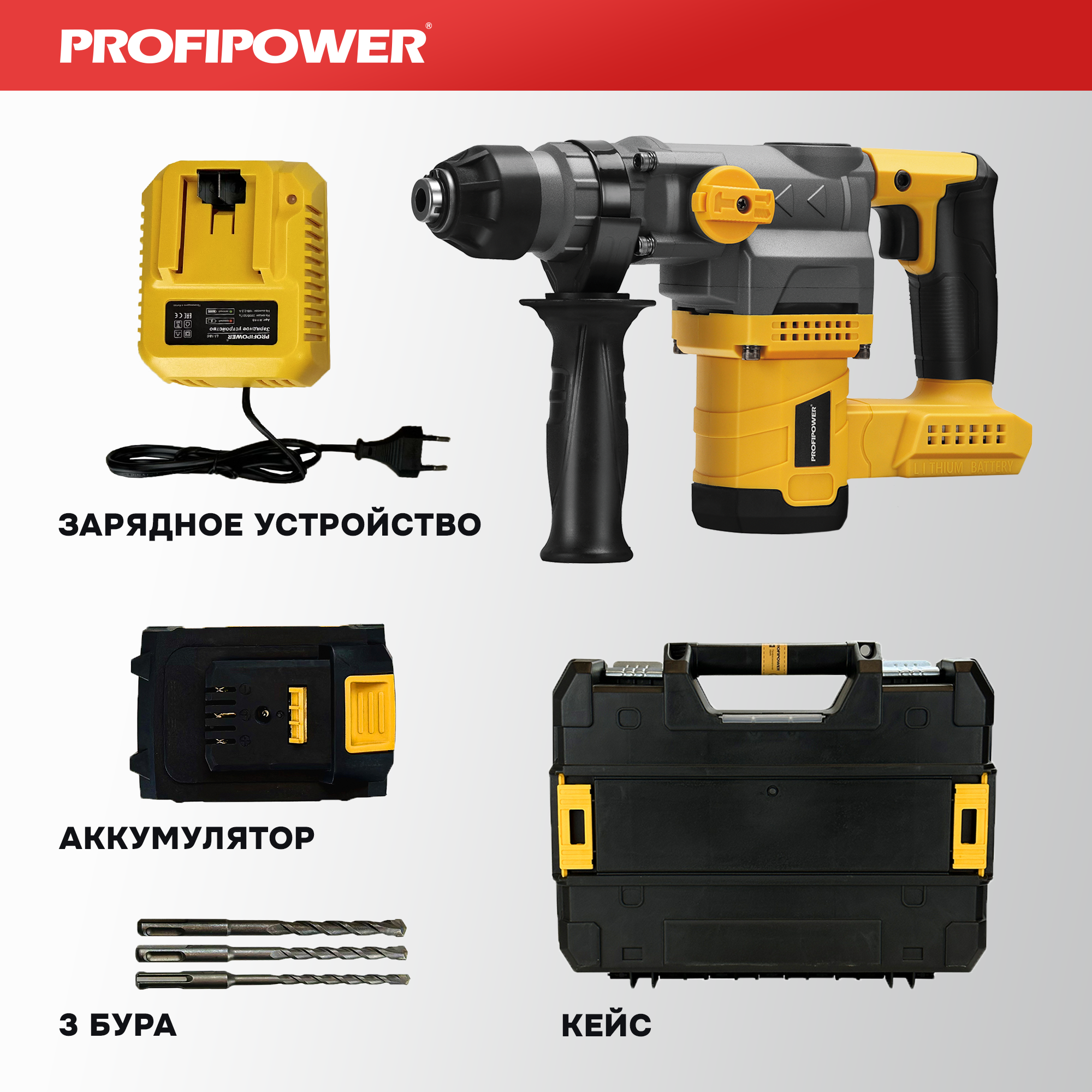 Аккумуляторный перфоратор беcщеточный Profipower 18V (Li-ion-1шт, 4.0Ач, 2,2Дж, 2 режима, З/У, кейс) интересное: