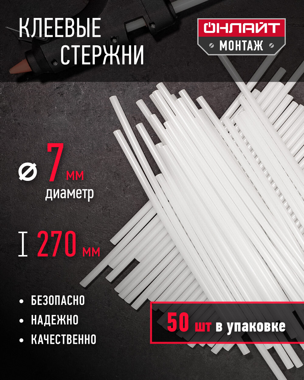 Клеевые стержни для клеевого пистолета онлайт 90 094, 7 мм*270 мм, упаковка 50 шт. интересное: