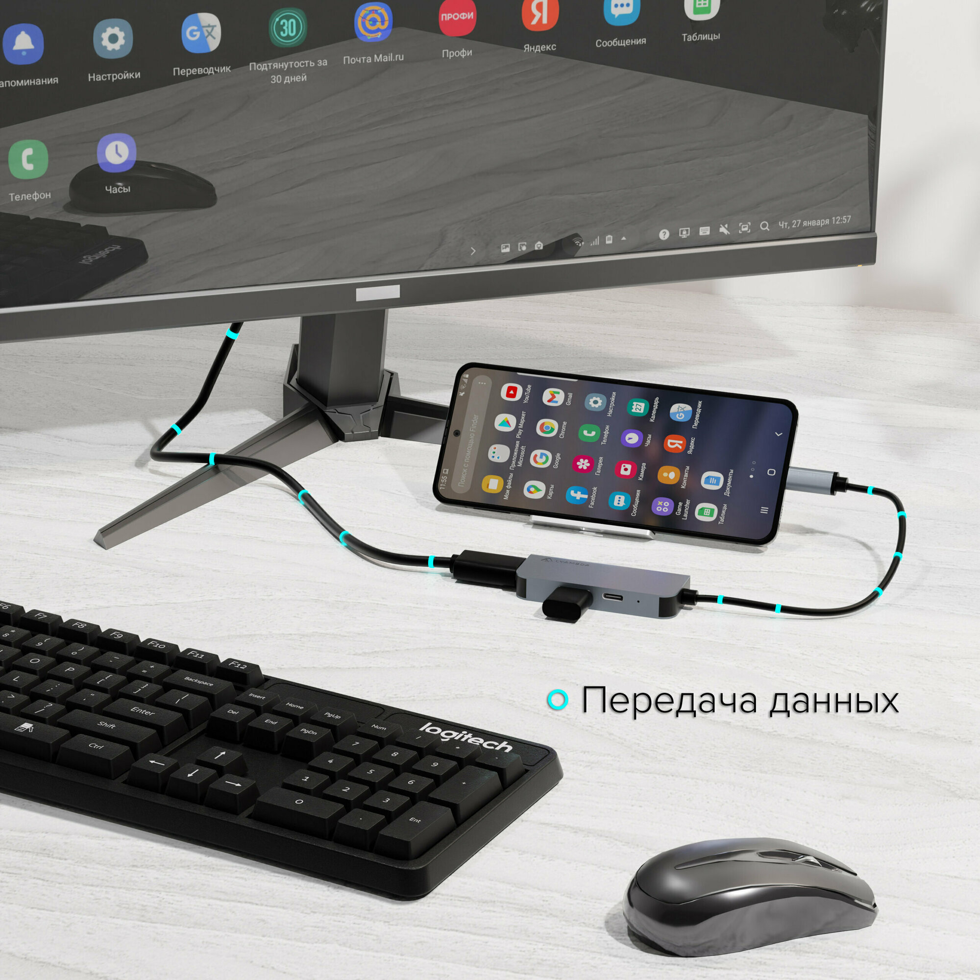 Разветвитель Type-C 3 в 1 Multimedia 4K/USB/PD / USB-Hub / USB - концентратор Lyambda Slim Aluminum LC105 Gray интересное: