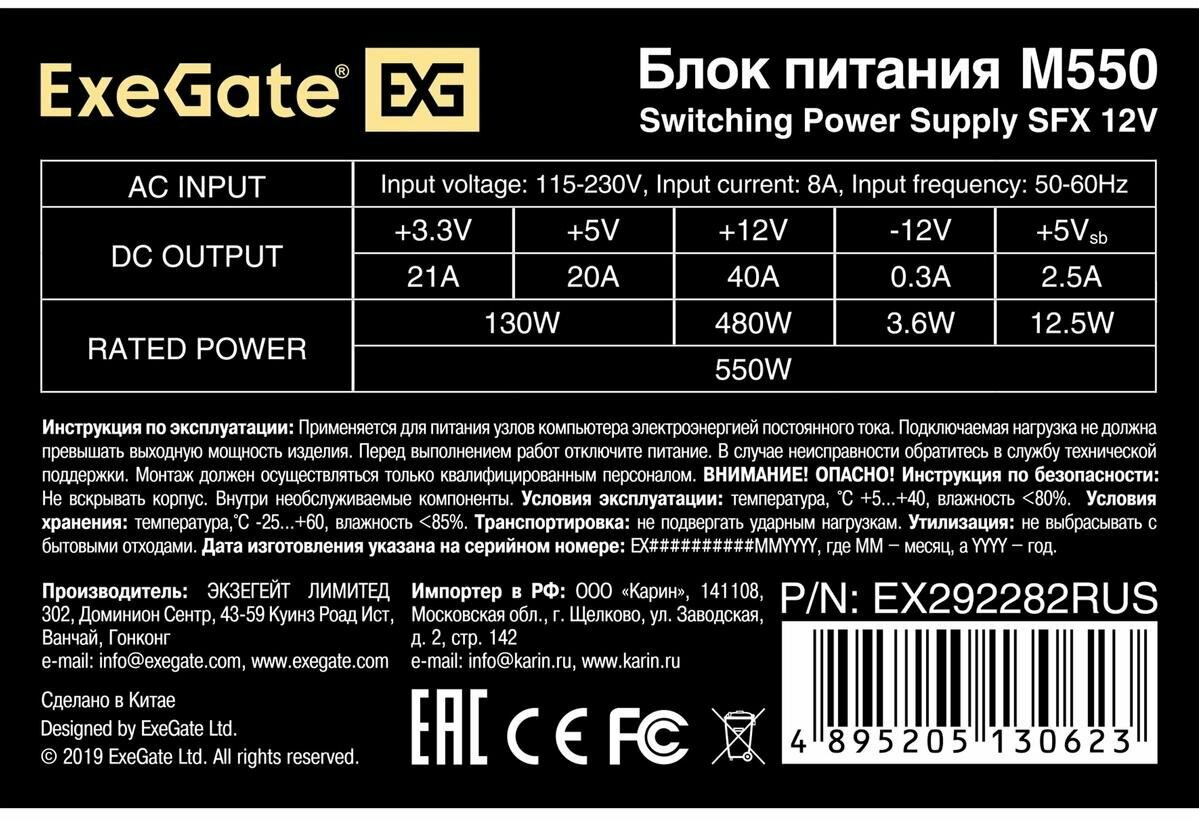 БП SFX 550 Вт Exegate M550 интересное: