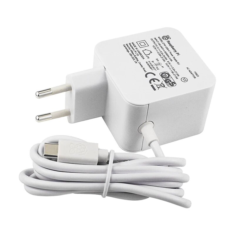 Блок питания для микрокомпьютера Raspberry Pi 5 (EU) 27W USB-C Power Supply, белый