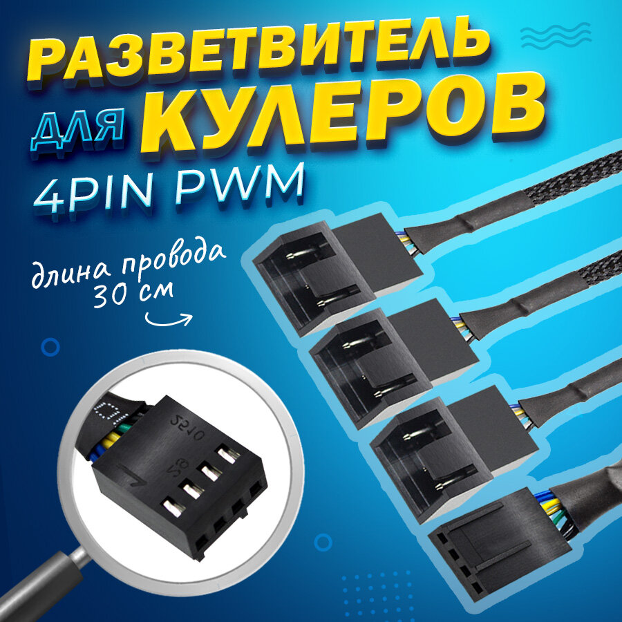 Купить Cплиттер (разветвитель) на ПК для 3 кулеров (вентиляторов) 4PIN PWM (4PIN+3PIN), укрепленный 30см кабель-удлинитель для вентиляторов на компьютер