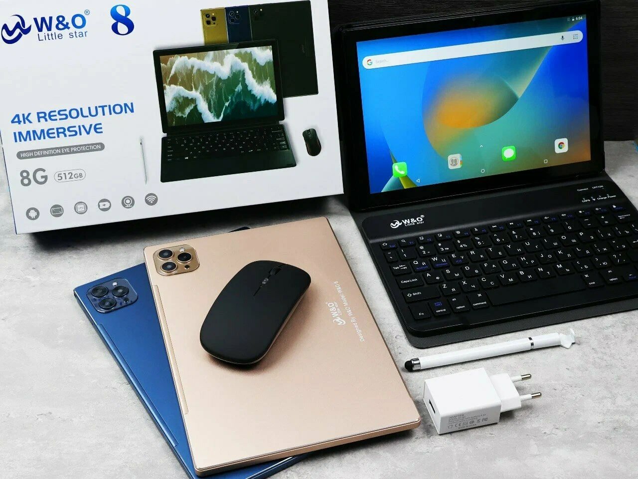Купить Планшет W&O 8 / Планшет с клавиатурой, чехлом-книжкой, стилусом и беспроводной мышкой / черный