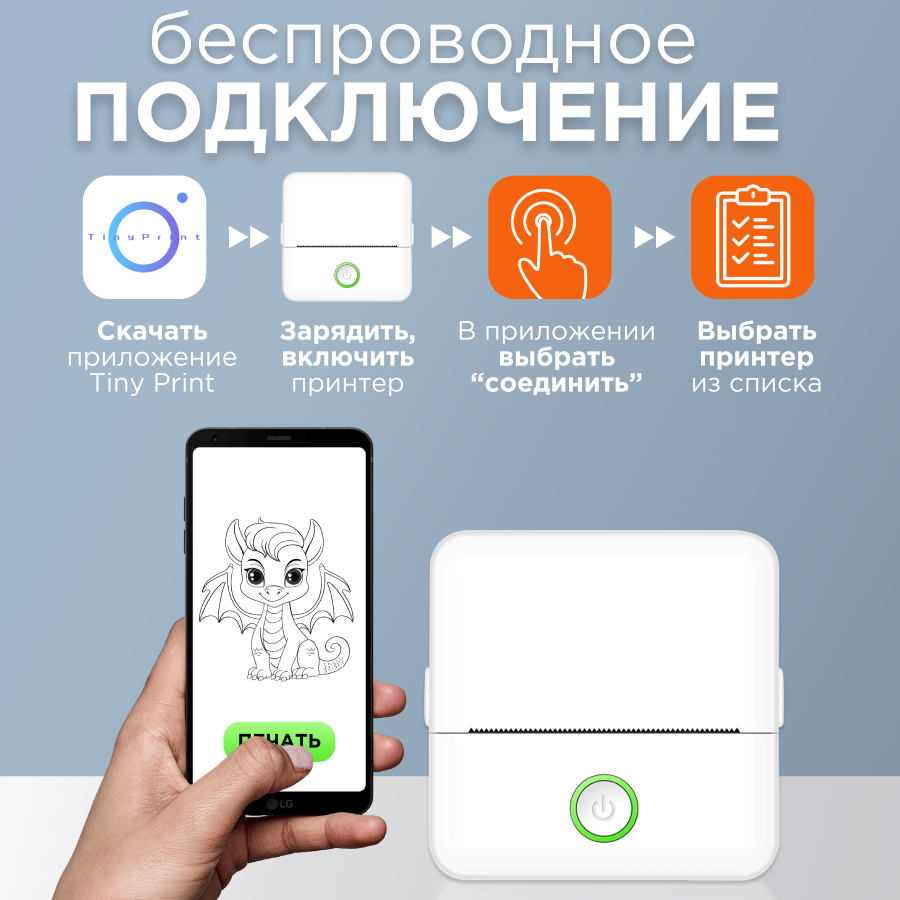 Купить Мини принтер для телефона беспроводной TinyPrint