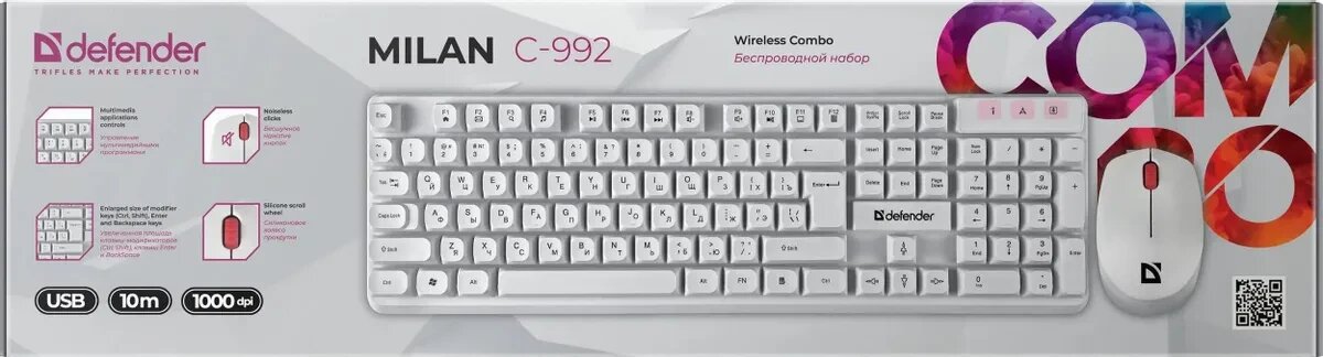 Клавиатура и мышь Defender MILAN C-992 RU беспроводные белый (45994) интересное: