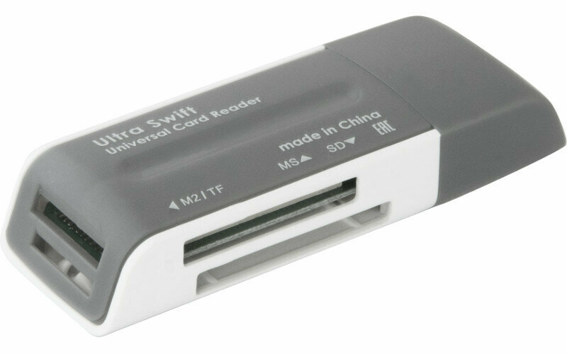 Картридер Defender Картридер RS-MMC/MSDuo/MSPRO/SDHC/Micro-SD(T-Flash)/MSPRODuo/MS/SD/M2/Micro-SDHC/MMC Defender Ultra Swift 83260, внешн., серый (USB2.0) (ret)