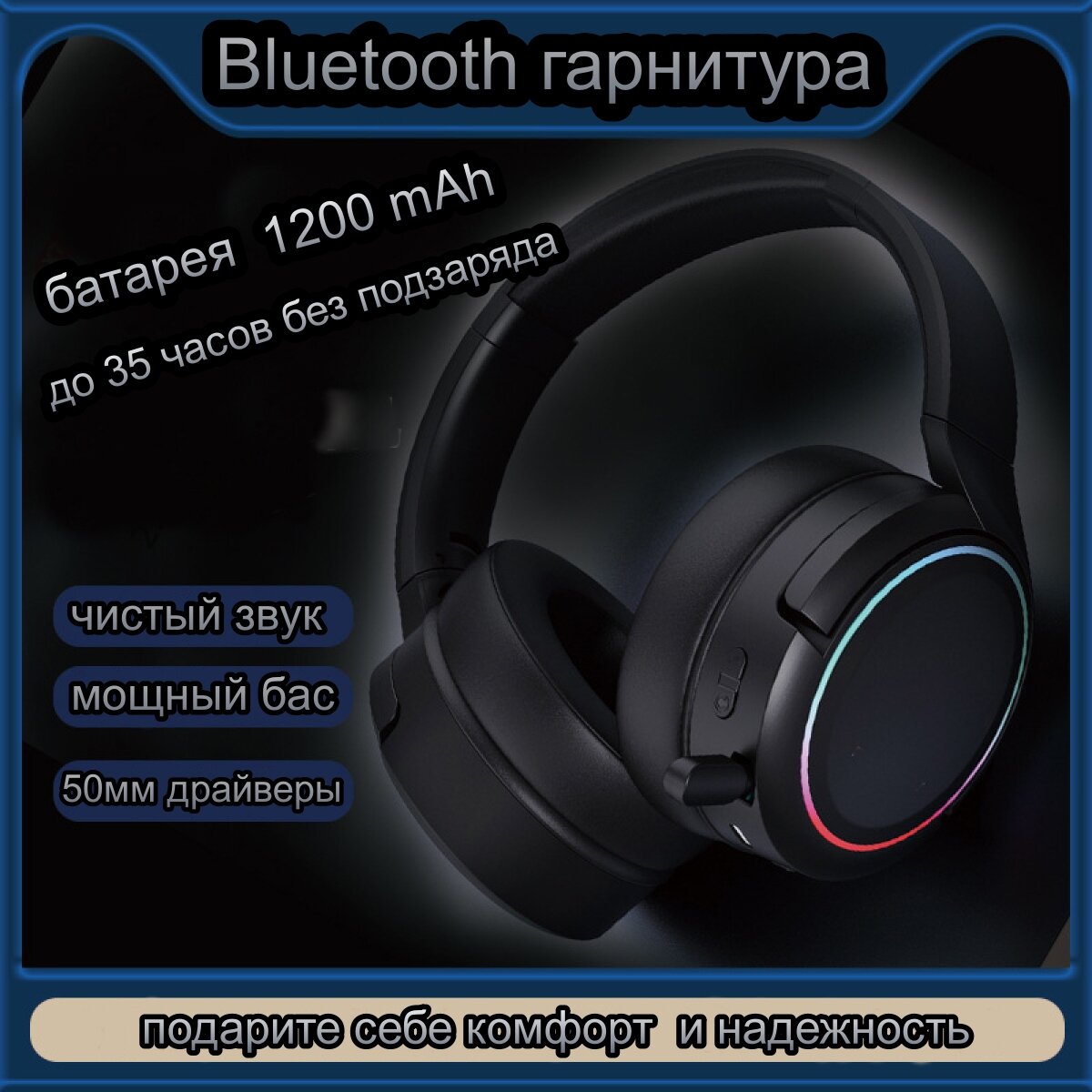 Ниже Вы можете прочитать отзывы на Наушники беспроводные, с микрофоном, RGB подсветкой, блютуз гарнитура, черный, ознакомится с подробными характеристиками, посмотреть интересные обзоры и фотографии на Наушники беспроводные, с микрофоном, RGB подсветкой, блютуз гарнитура, черный.