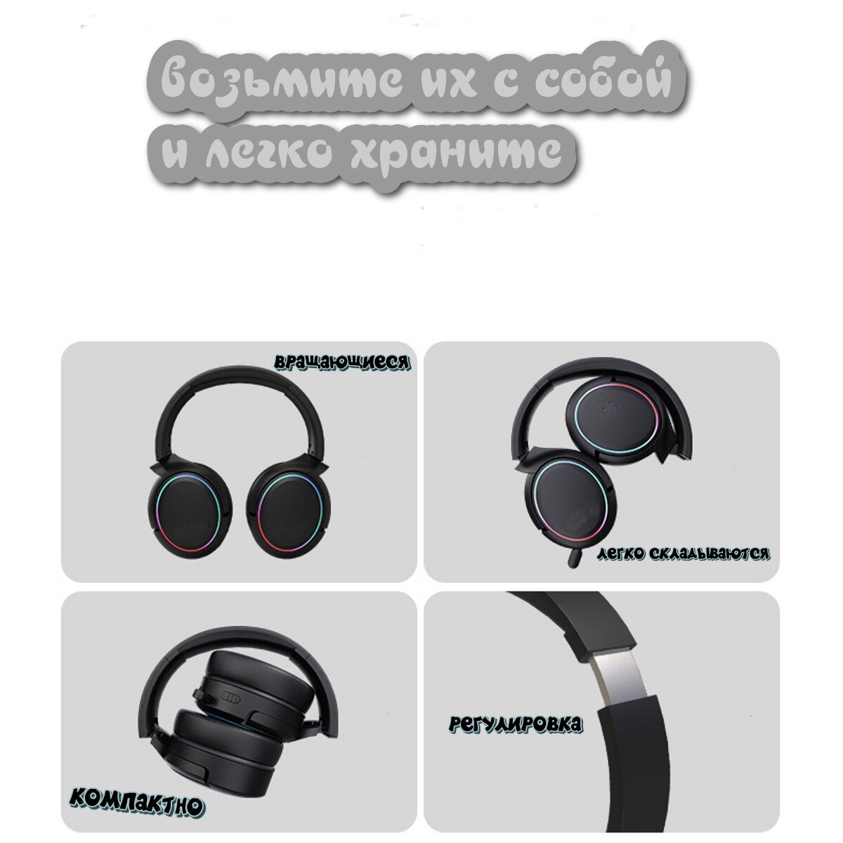 | Особенности конструкции | RGB подсветка / мягкие амбушюры / регулятор громкости / складная конструкция |
