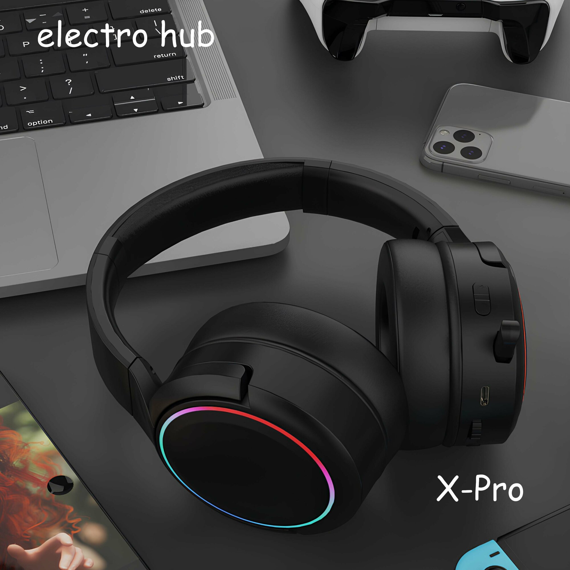 Наушники беспроводные игровые с микрофоном RGB подсветкой, блютуз гарнитура для компьютера, ноутбука, телефона, белые, X-PRO