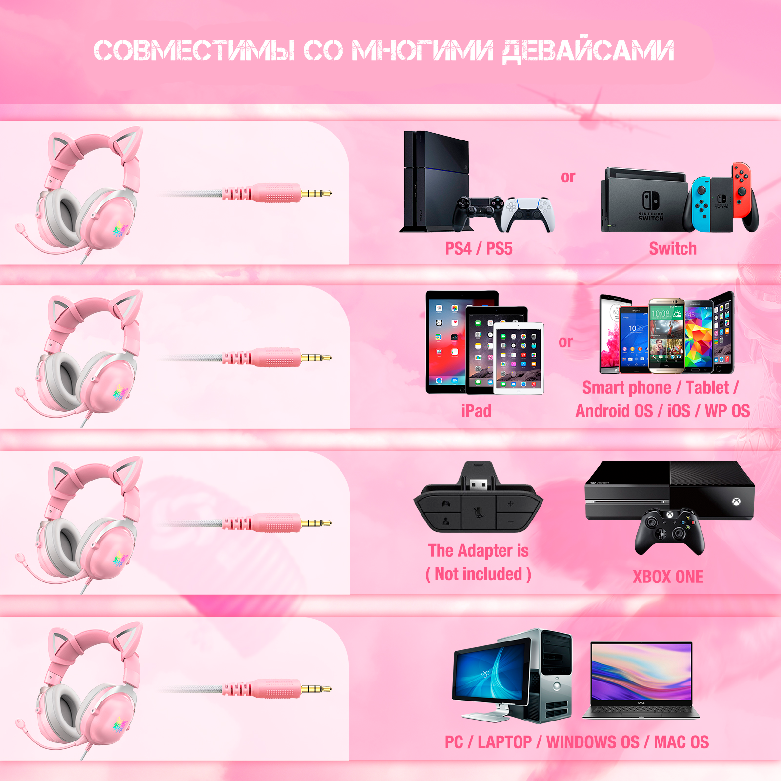 СохранитьИгровые наушники Onikuma X11 Rose Cat розовые с кошачьими ушками и подсветкой интересное: