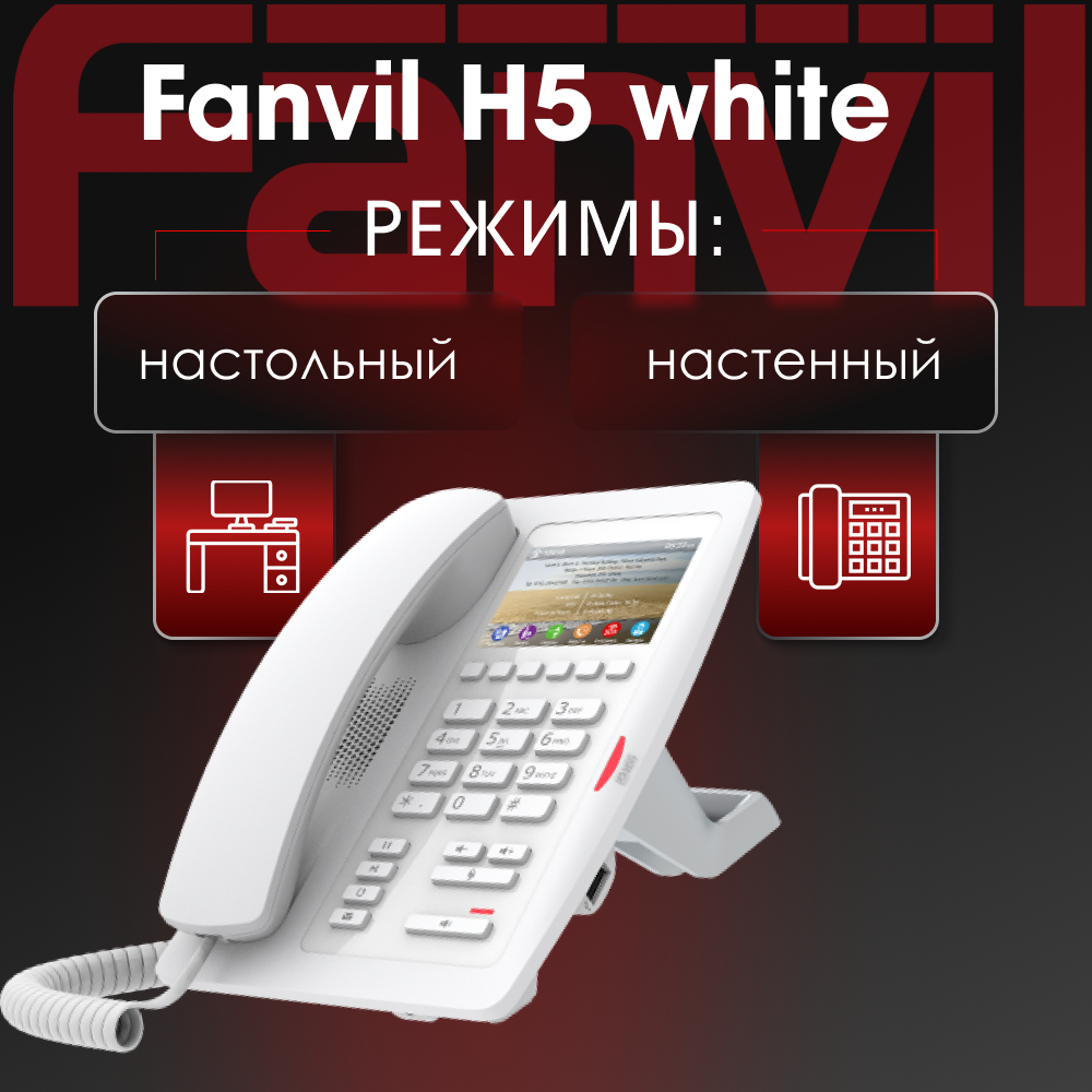 IP-телефон Fanvil H5 white, 2 SIP аккаунта, цветной 3,5 дисплей 480x320, поддержка POE. интересное:
