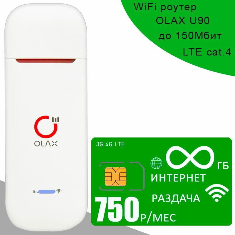Купить Беспроводной 3G 4G LTE USB модем OLAX U90 + сим карта с безлимитным интернетом и раздачей за 750р/мес