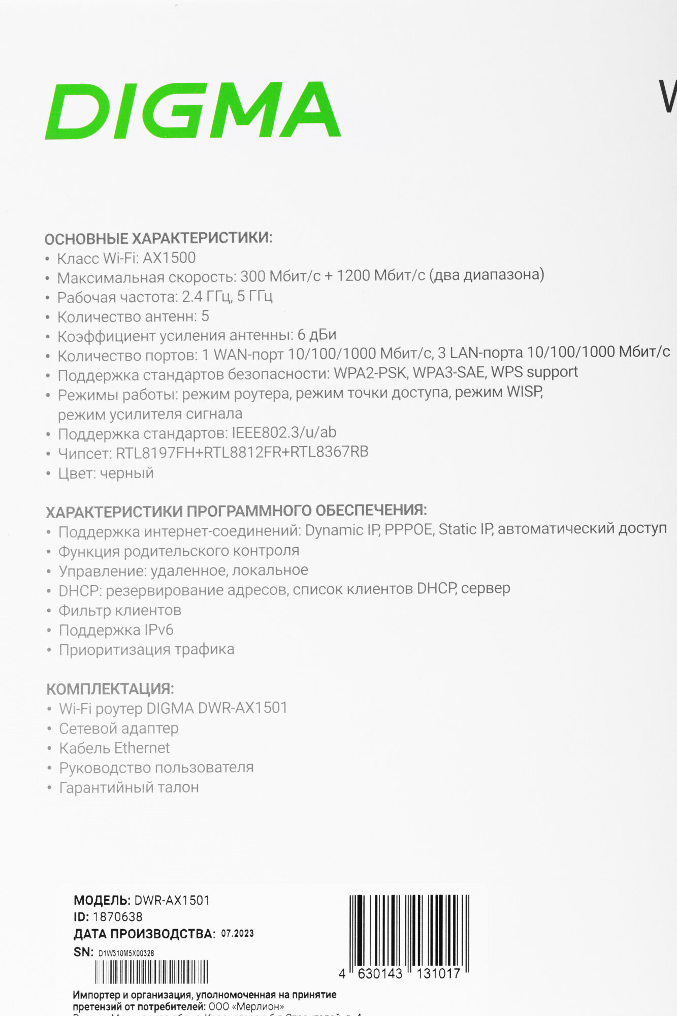Купить Wi-Fi роутер DigmaDWR-AX1501