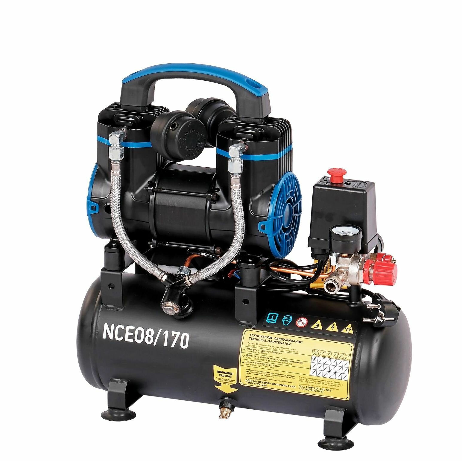 Компрессор NORDBERG NCEO8/170 безмасляный 220 В, ресивер 8 л, 170 л/мин NORDBERG NCEO8/170 | цена за 1 шт