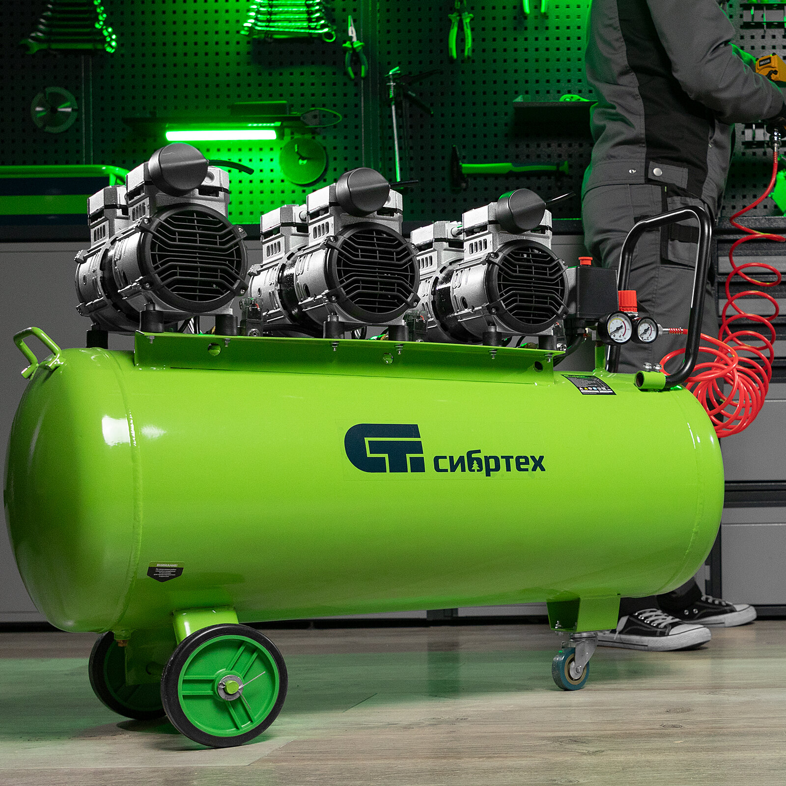 Купить Сибртех : 58008 Компрессор безмаслянный малошумный МБ 2250/100, 2250 Вт, 100л, 400 л/мин