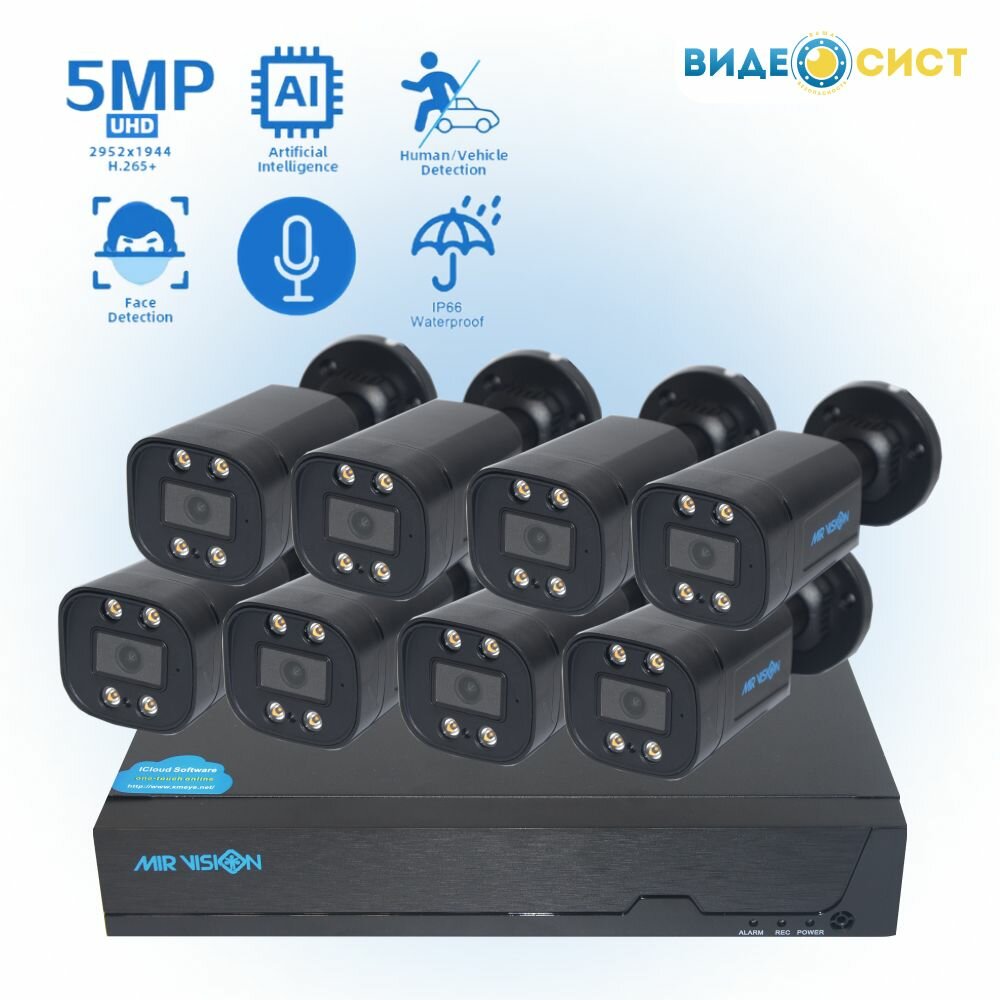 Купить Готовый комплект видеонаблюдения уличный 5Mp с микрофоном 8 камер