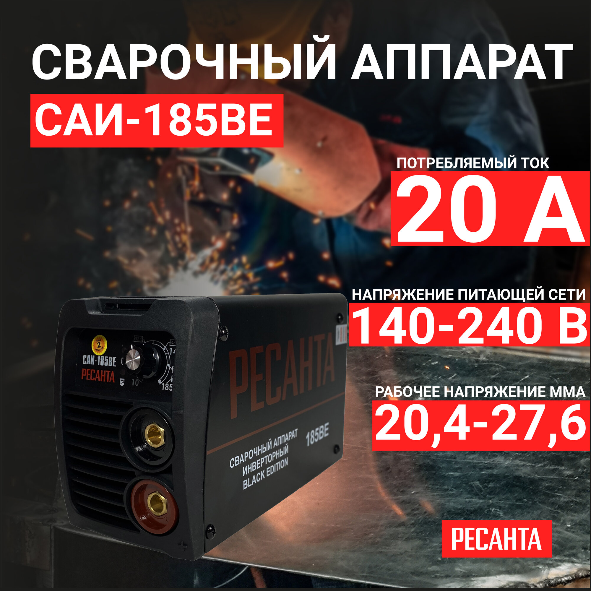 Сварочный аппарат инверторный САИ-185 BE Ресанта, ММА, 10-190А