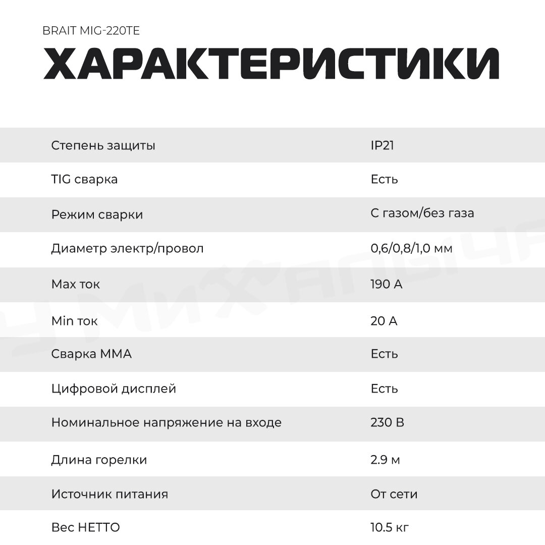 Инвертор сварочный полуавтомат MIG-220TE интересное: