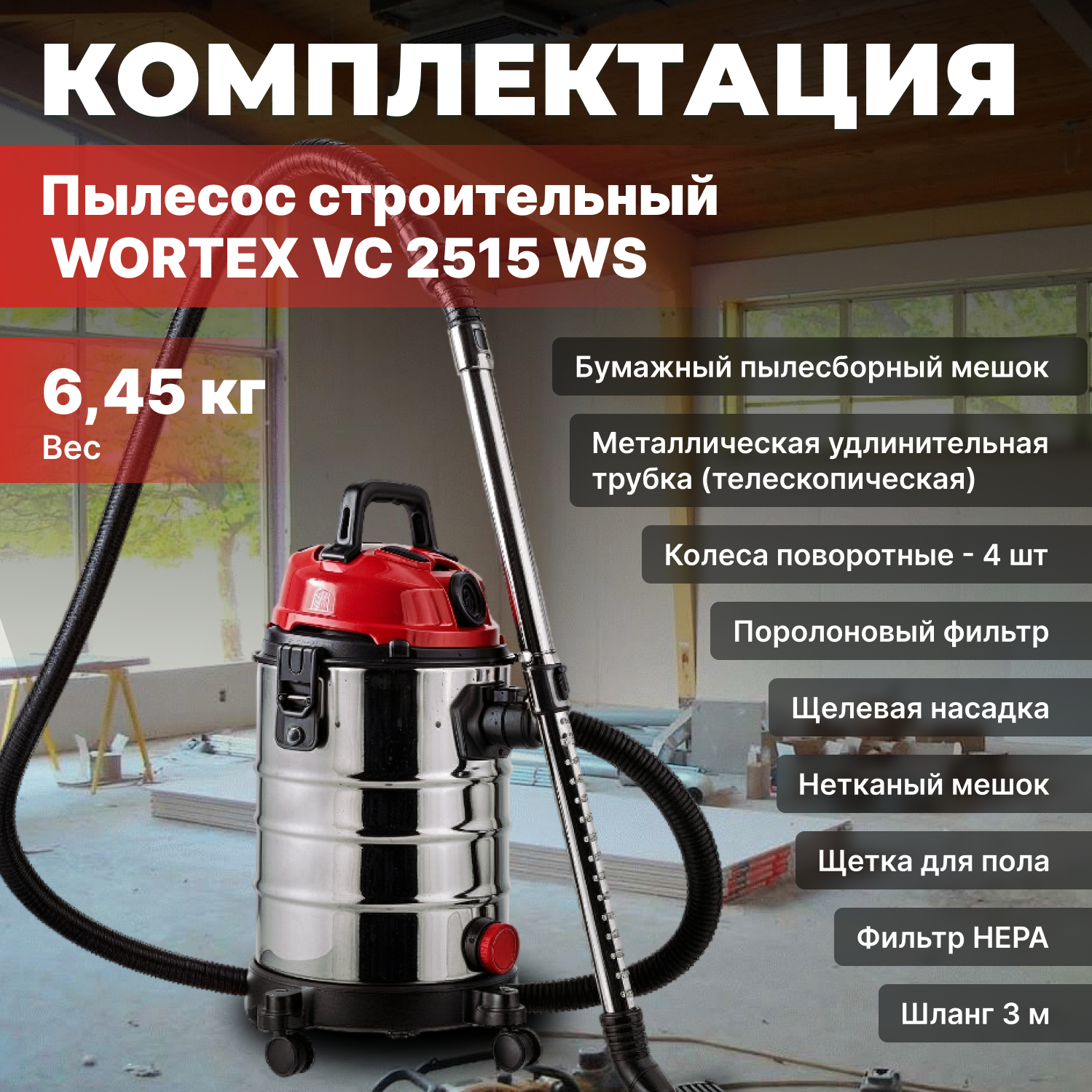 Пылесос строительный WORTEX VC 2515 WS (1334468) интересное: