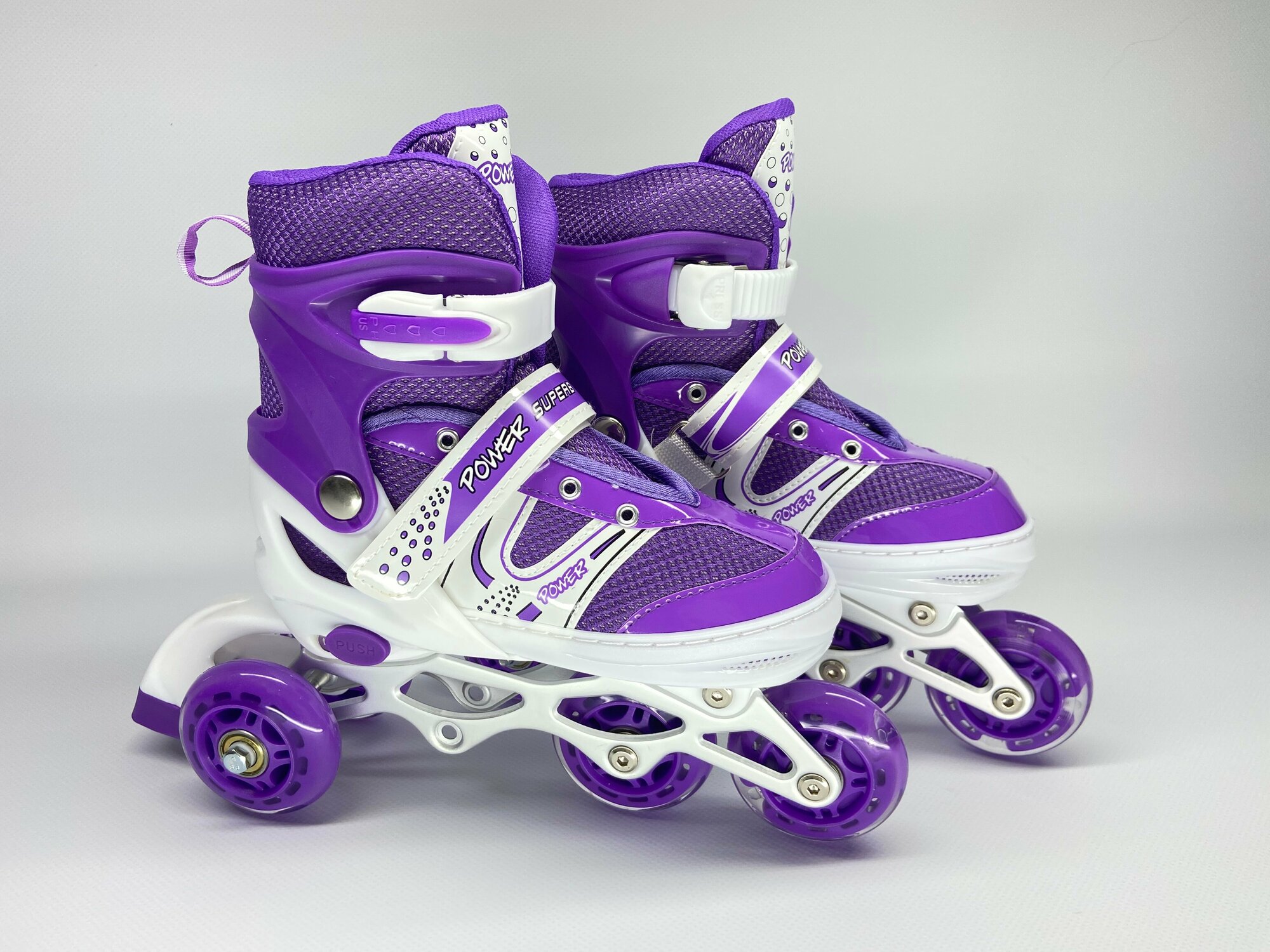 Купить Роликовые коньки детские раздвижные размер 35-38 светящееся колесо фиолетовые