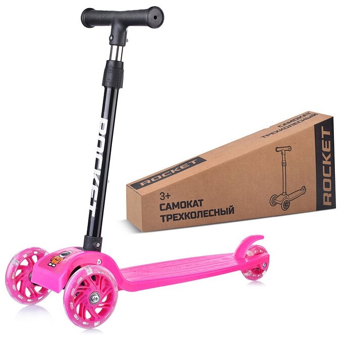 Самокат трёхколёсный ROCKET колёса световые PU, цвет розовый