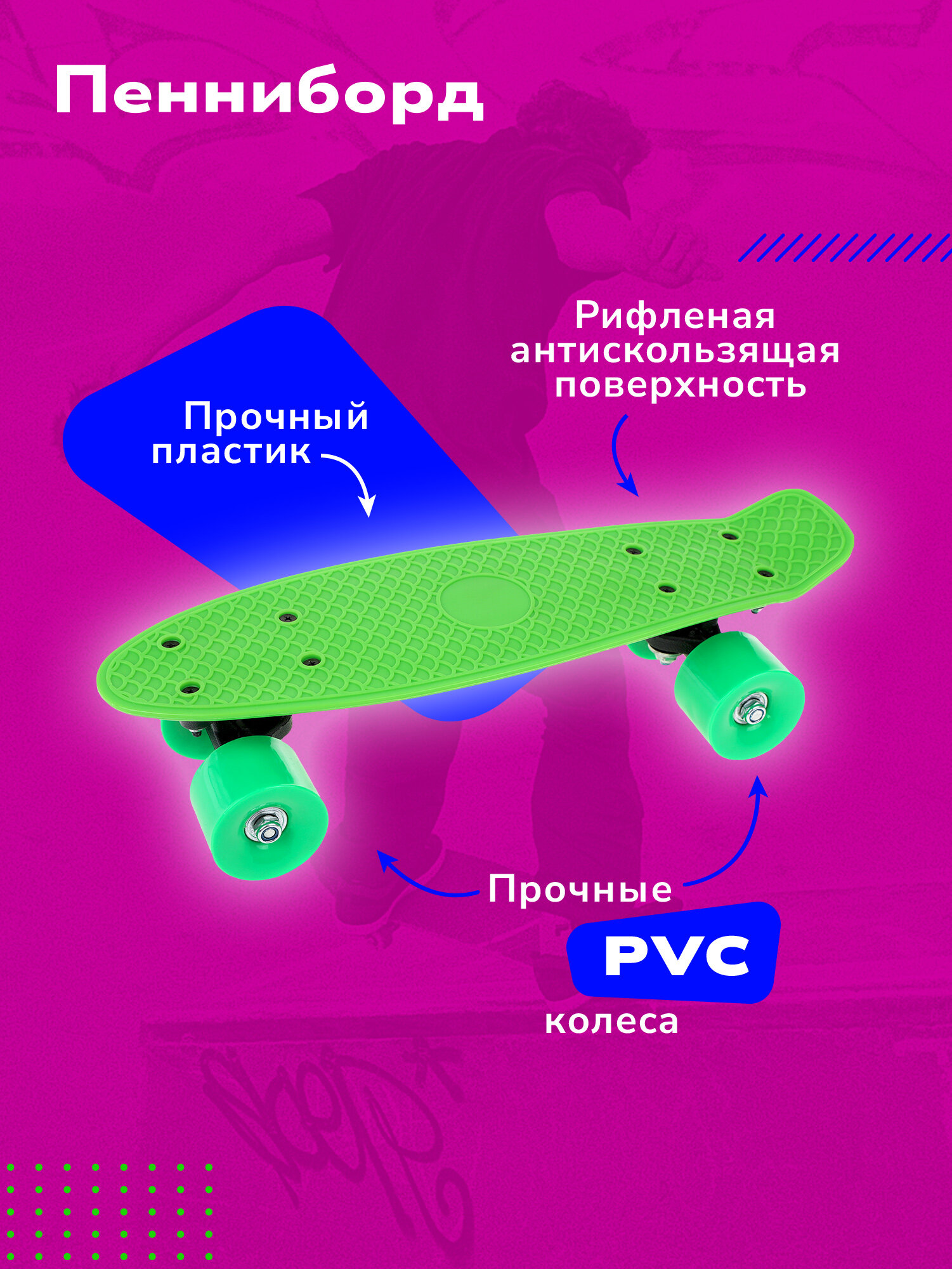 Скейтборд детский с большими колесами зеленый