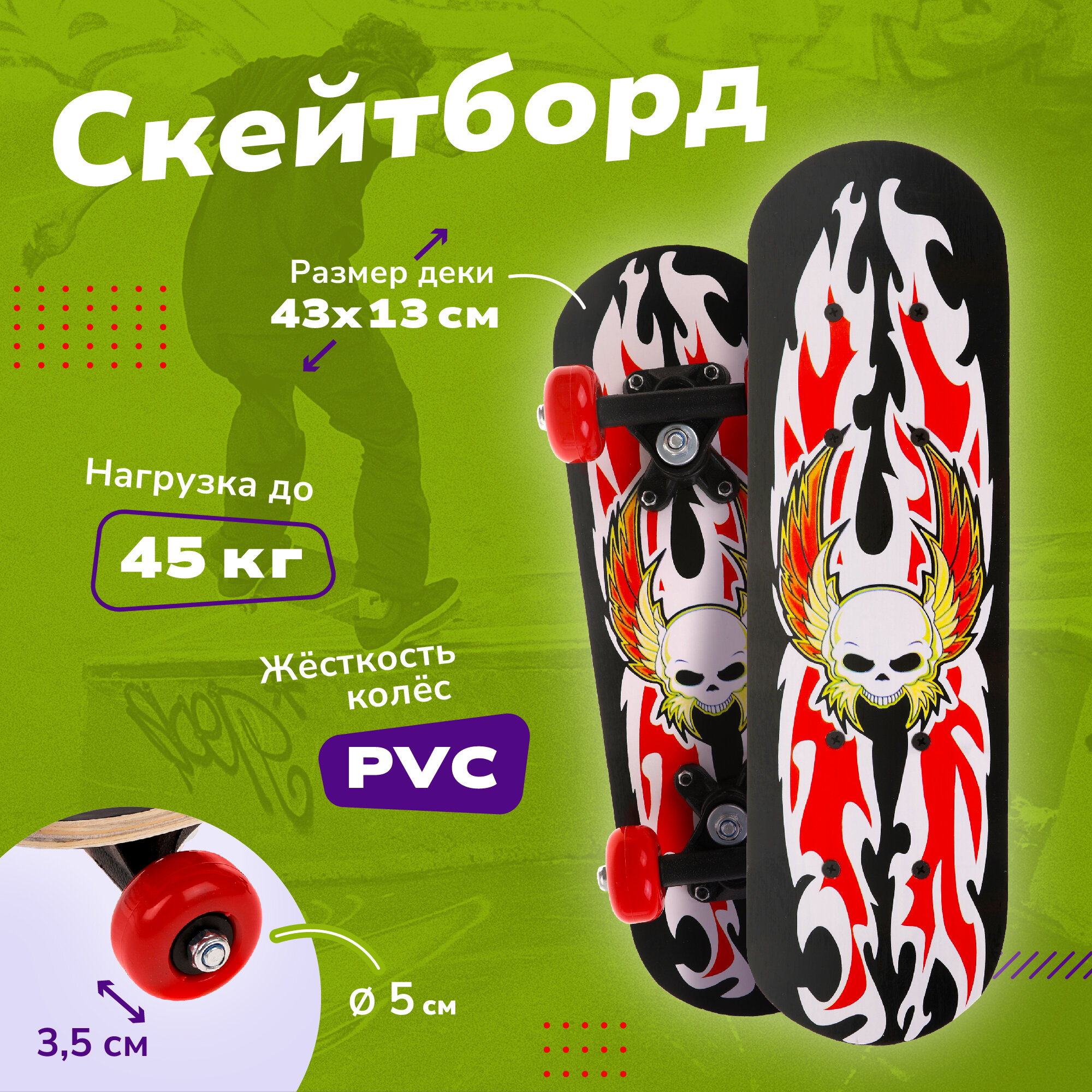 Ниже Вы можете прочитать отзывы на Скейтборд дерев. PVC колеса без света 43*13 см макс. нагрузка до 30 кг., Принт Череп с Крыльями, ознакомится с подробными характеристиками, посмотреть интересные обзоры и фотографии на Скейтборд дерев. PVC колеса без света 43*13 см макс. нагрузка до 30 кг., Принт Череп с Крыльями.