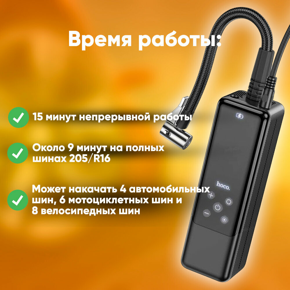 Автомобильный компрессор HOCO ZP5 с фонарем / Автомобильный насос электрический 12v с манометром от прикуривателя для накачки шин с дисплеем интересное: